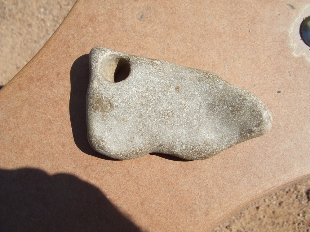 cailloux avec un trou du à l'érosion ou un perçage fait par un pholade pour moi.