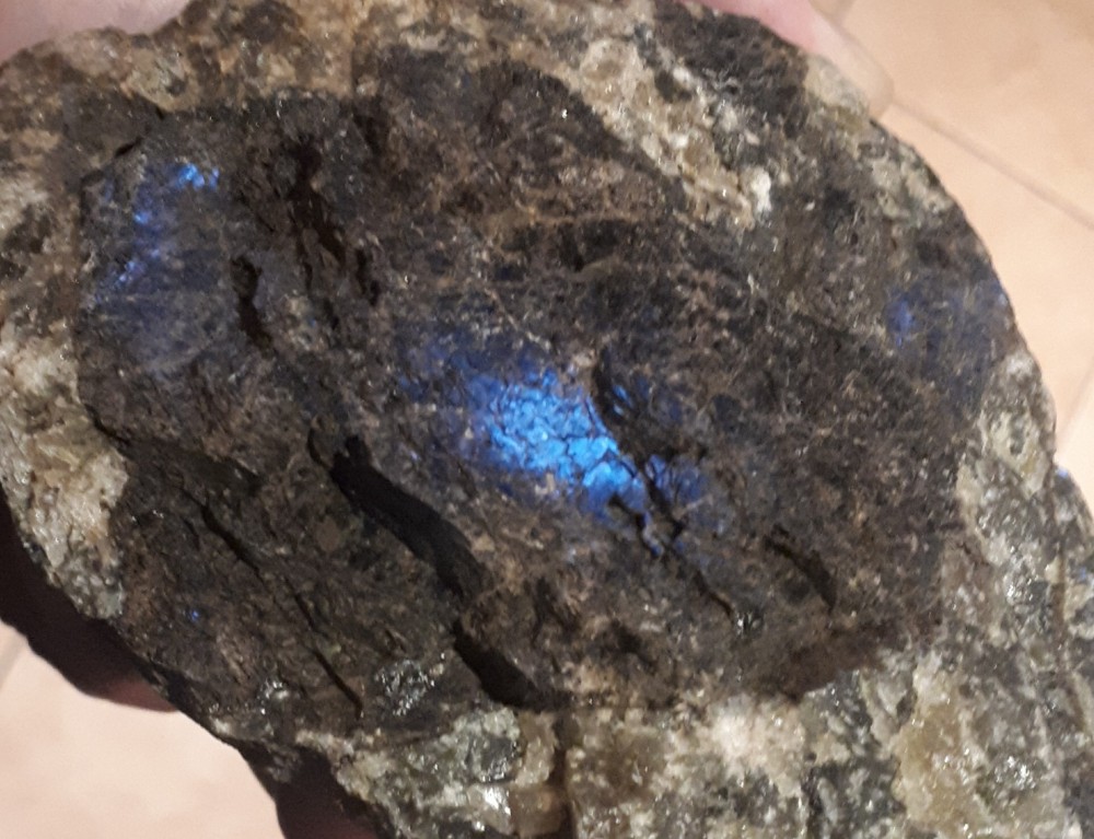 Labradorite, ça commence a etre dur, mais néanmoins plus tendre que l'agate!
