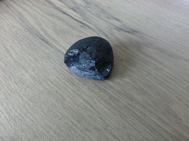 Je rajoute les guillemets car si pour la partie externe, au toucher, on a tout à fait la sensation de tenir un galet quasiment lisse, à l'intérieur, l'aspect est celui d'un morceau de charbon de bois brisé.