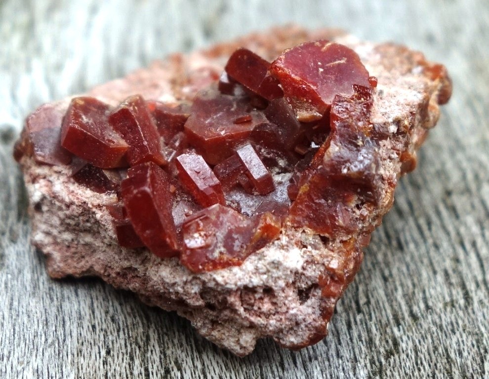 La deuxième pierre est rouge brun. Les cristaux sont magnifiques et ne rayent pas le verre.