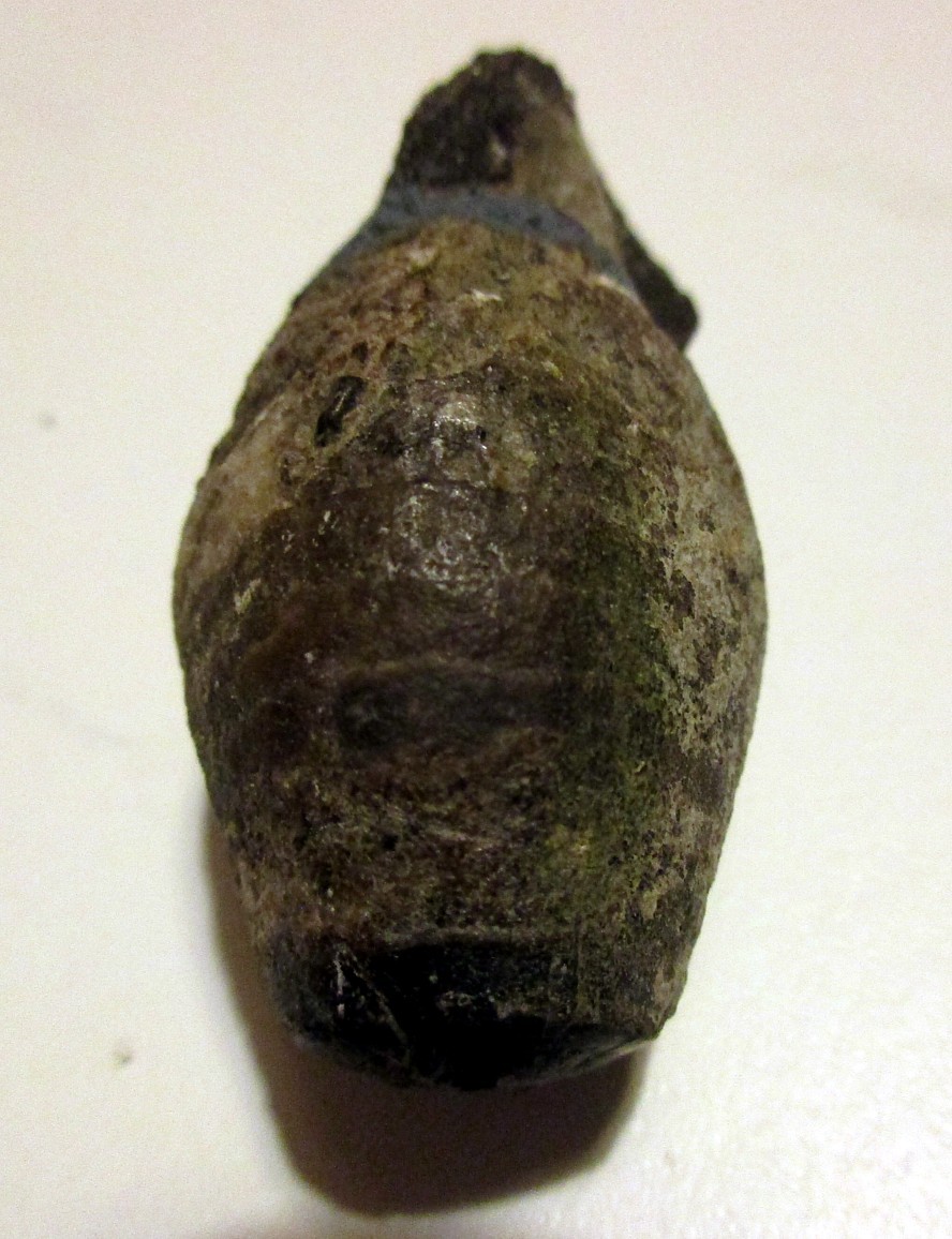 Longueur 5 cm , l'extrémité aplatie n'est pas cassée , c'est apparemment bien l'extrémité du fossile.