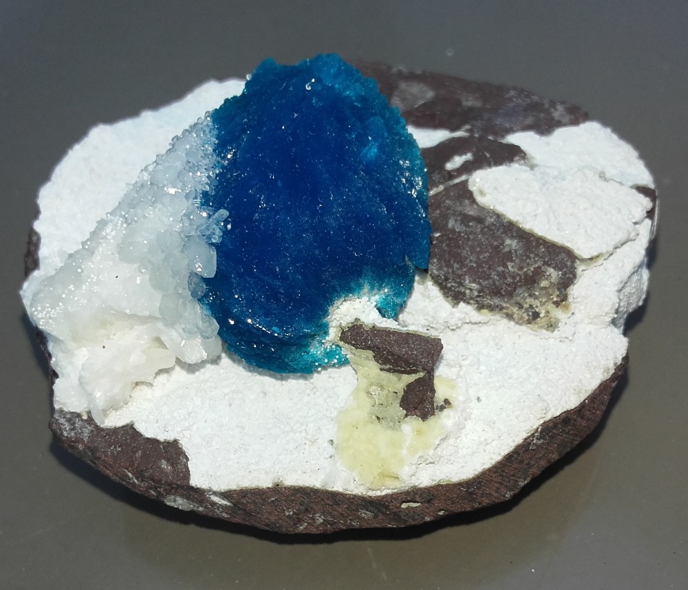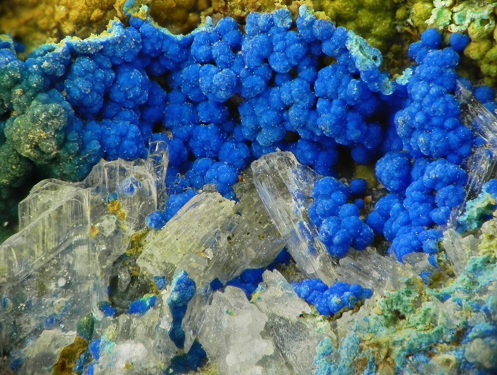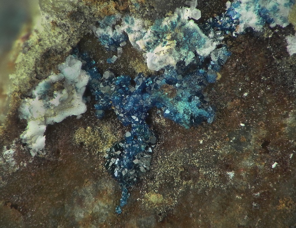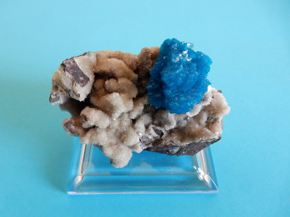 CYANOTRICHITE  sur CUPRITE et CUIVRE NATIF, le MOULINAL, TARN, FRANCE.