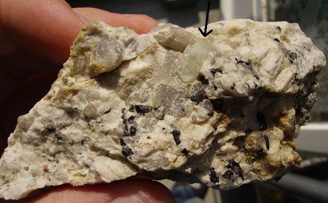 Une aigue marine accompagné de tourmalines noires et micro grenats mais pièce française