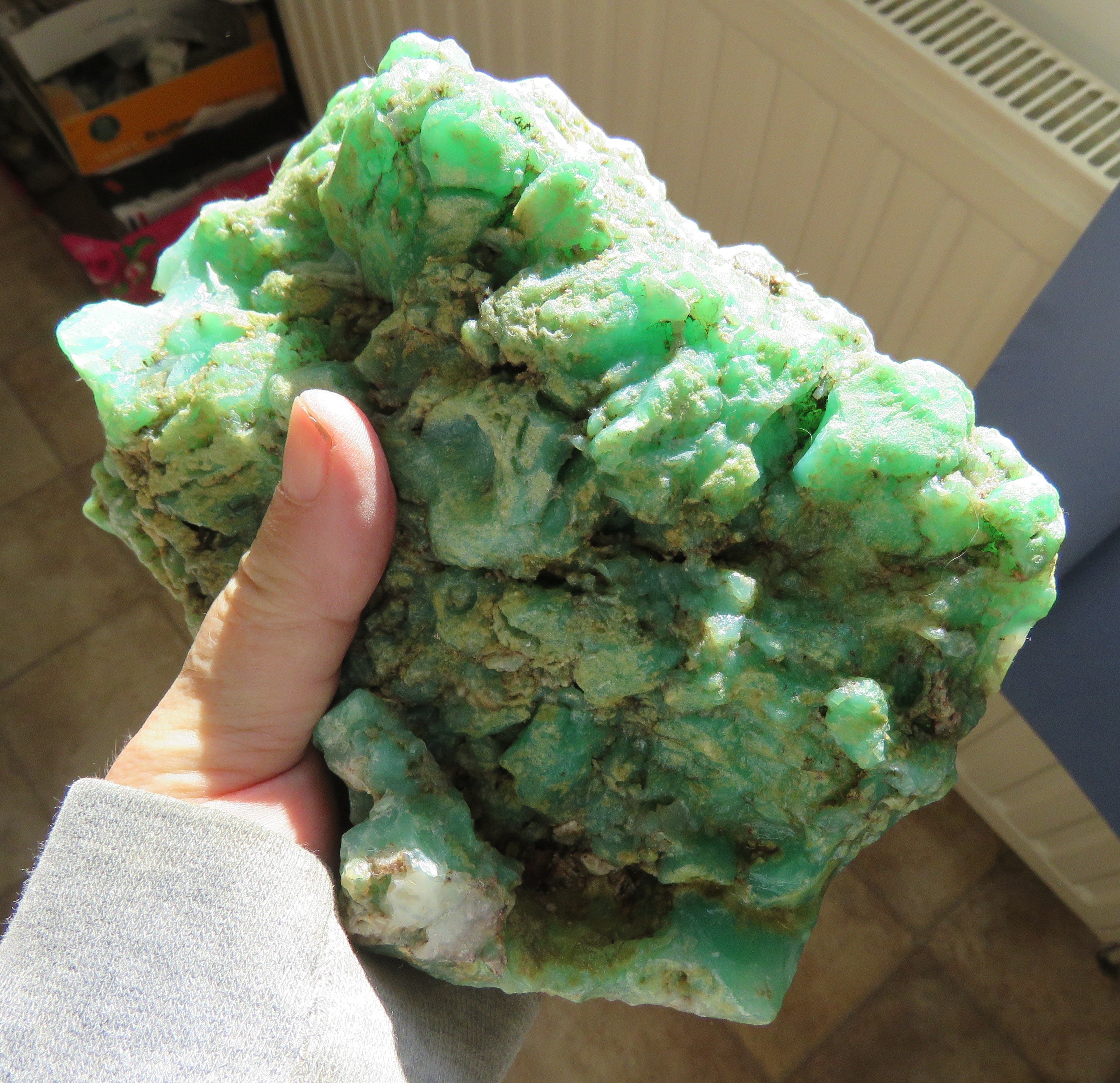 Vert d'Australie: bloc de calcédoine variété chrysoprase, Malborough, Queensland :
