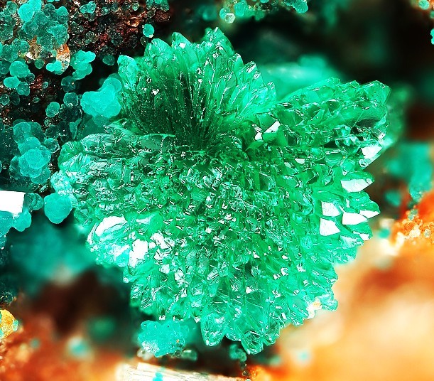 Adamite, cristaux groupés en roues: