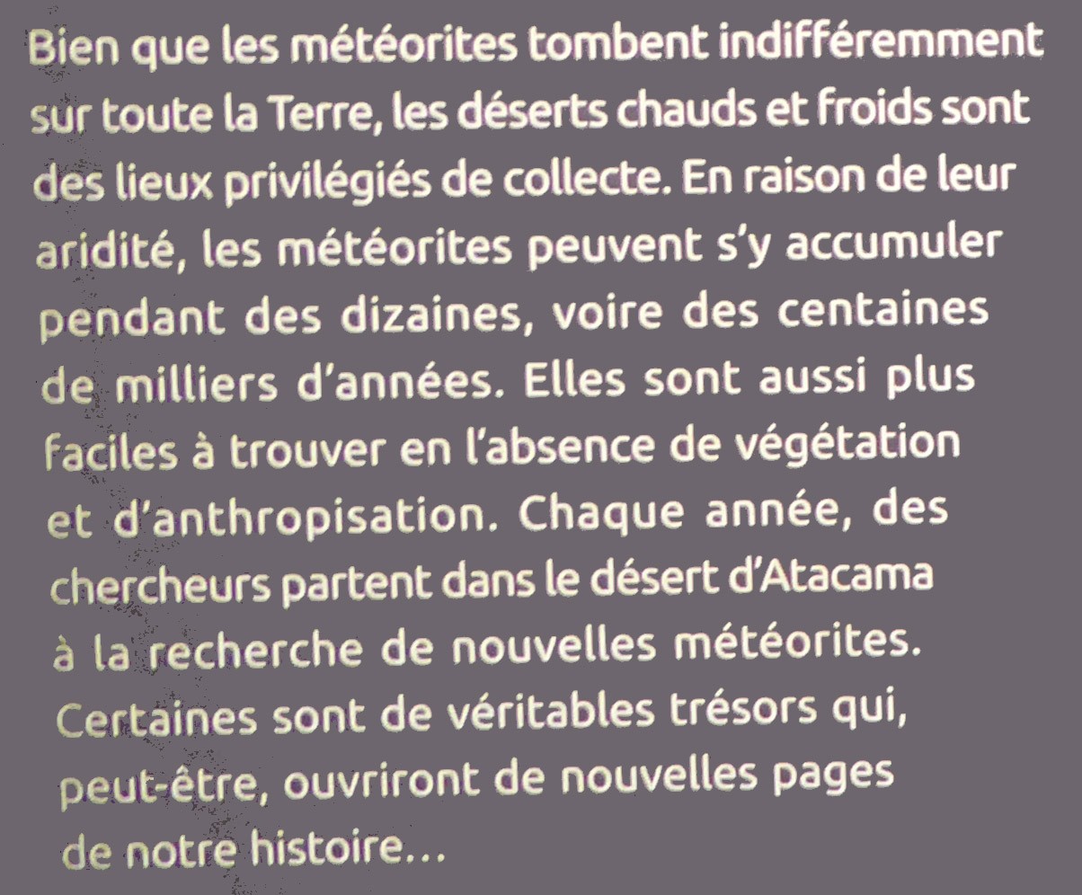 formi :super: ce reportage photos ( je ne savais pas que l'on pouvait photographier , dans ce musée ) , et qui démontre ( assez ) bien la complexité  pour reconnaître une météorite grâce à la croûte (de fusion réelle ) .