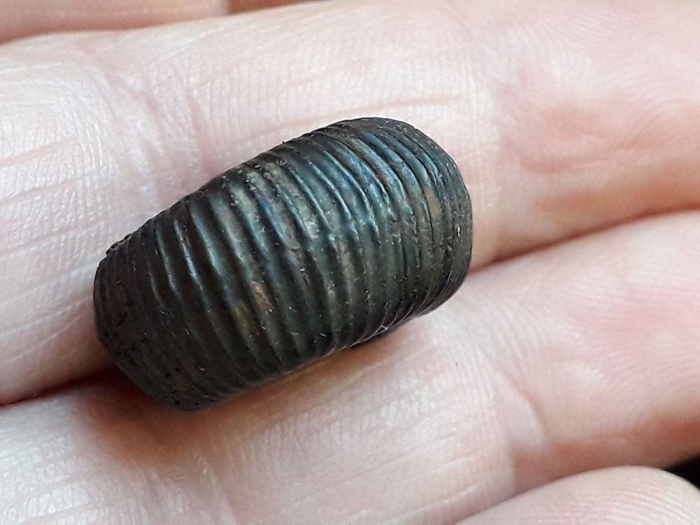 Belle bête ! Belle taille aussi sachant qu'il lui manque un peu plus d'un demi-tour (ammonite longidôme) Un allure unique chez ces dactylioceratidae domériens, avec leur côtes simples, leurs premiers tours en entonnoir profond et, au contraire, la chambre d'habitation qui montre une rétractation progressive du tour. Je n'en ai jamais trouvé en Lozère et j'ai perdu tous