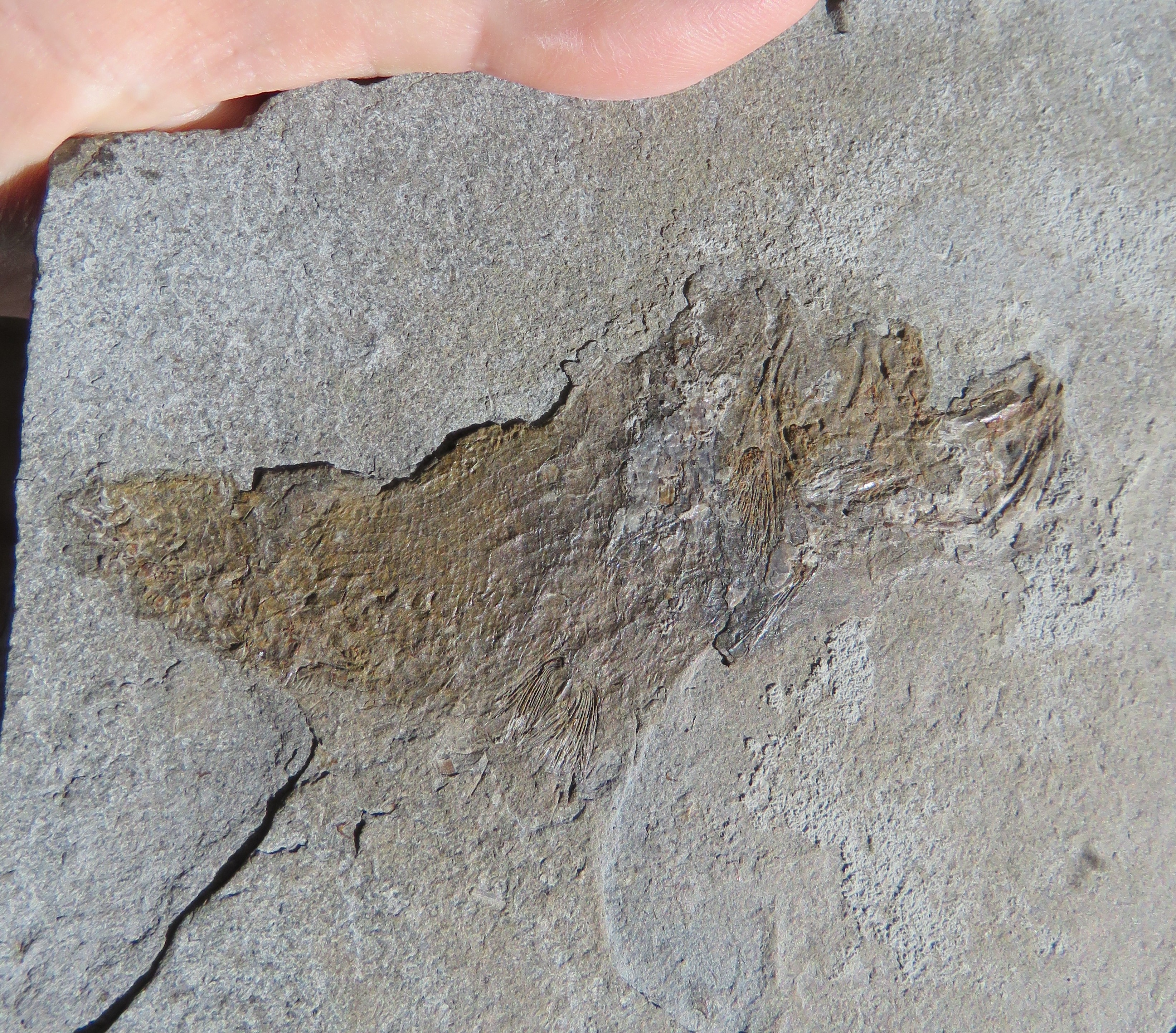 Bonjour, merci pour cette confirmation. Ces éléments crâniens sont certes très partiels, mais ils indiquent une belle taille pour ce poisson. Pour une raison inconnue, les restes de poissons dans les schistes-cartons ss. locaux sont toujours très fragmentaires.
