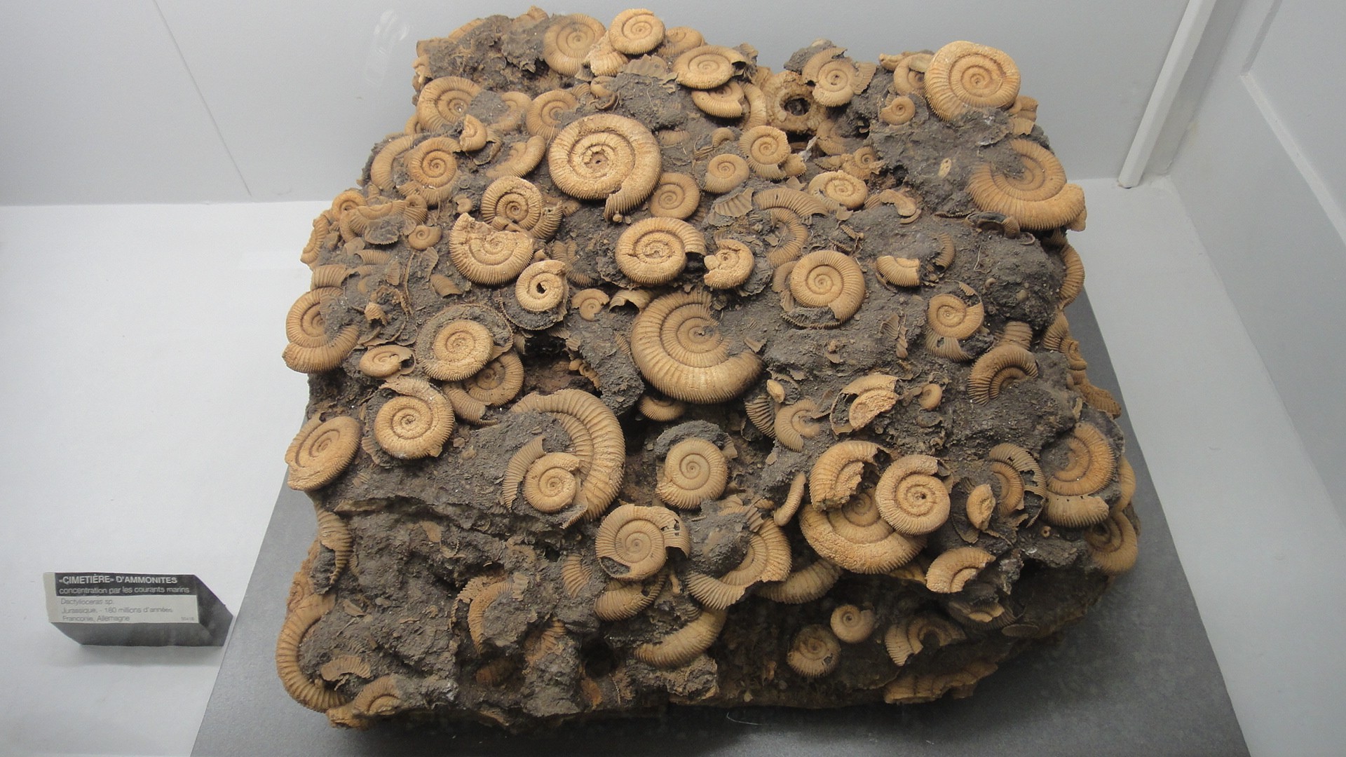 Dans cette galerie de minéralogie sur toute la partie gauche, il y a des petits box vitrés/éclairés qui contiennent des minéraux et en allant vers le fond de la salle, c'est plutôt des fossiles.