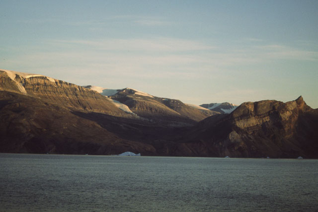 ( cote Nord Est du Groenland, a priori vue vers le sud-sud ouest, depuis le bateau sur l'Antartics Sund, de Johnstrups Bjerg )