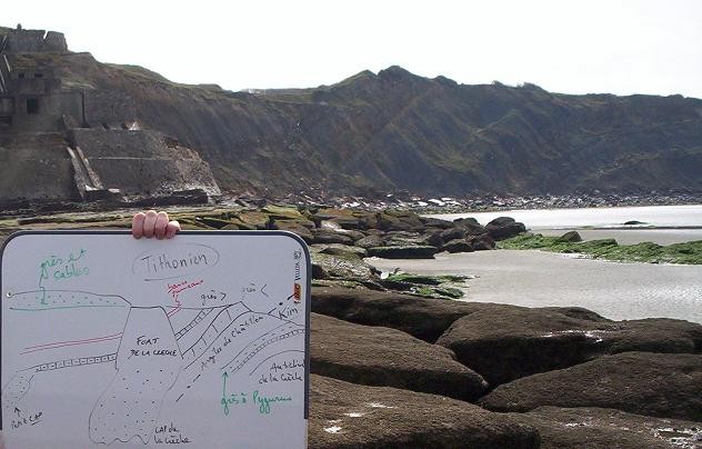 Cette photo date de notre (unique) sortie géologique à la Fac de Lens dans le massif du Boulonnais, et c'est O. Wilfart qui tient le fameux tableau blanc, le fameux prof de la fac de Lens.