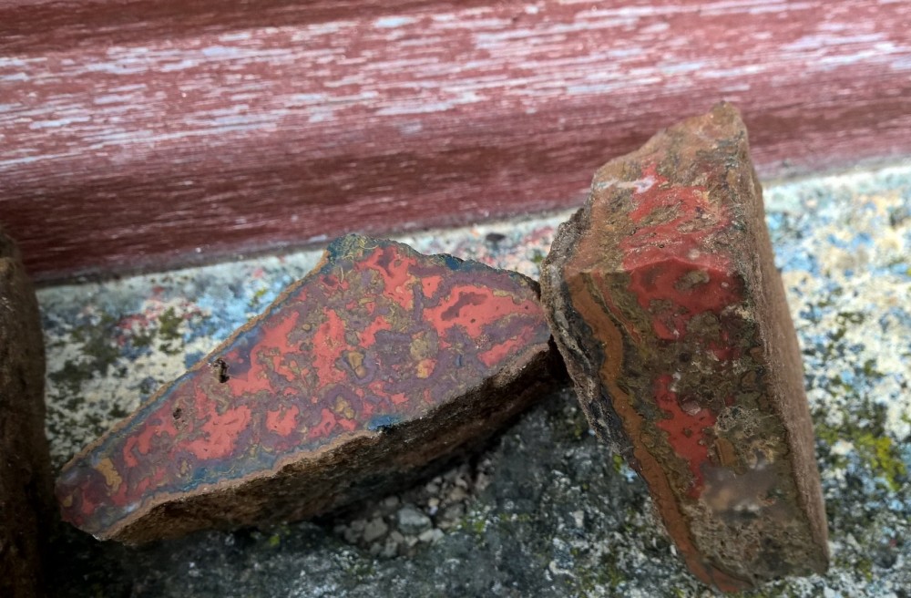 Bjr Serge, oui plein de trucs. Je trouve aussi des hématites et jaspe. Il y a aussi de veines d argile de plusieurs couleurs, verte pomme, grise et rouge. Je poste une photo d une pierre que J ai trouvé au début de mon entreprise de démolition. Pièce de 5,5kg qui ressemble à de l hématite mais pas comme les autre. Je l ai couper et poli sur 2 faces