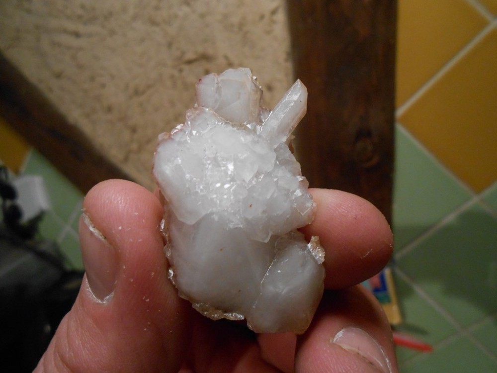 j ai trouve un site où il y a énormément de calcite et paf un jour sur une couche supérieure que des géodes de quartz rose, première fois que j en voyait, a cet endroit j y ai trouvé aussi des cubes de pyrite de 0.5 cm, des multitudes de micro