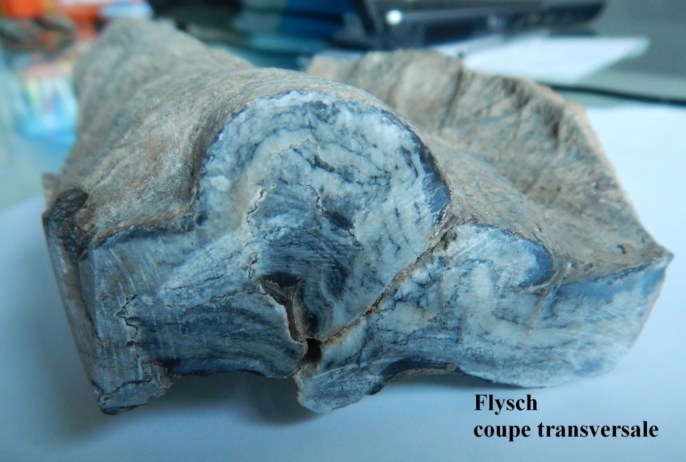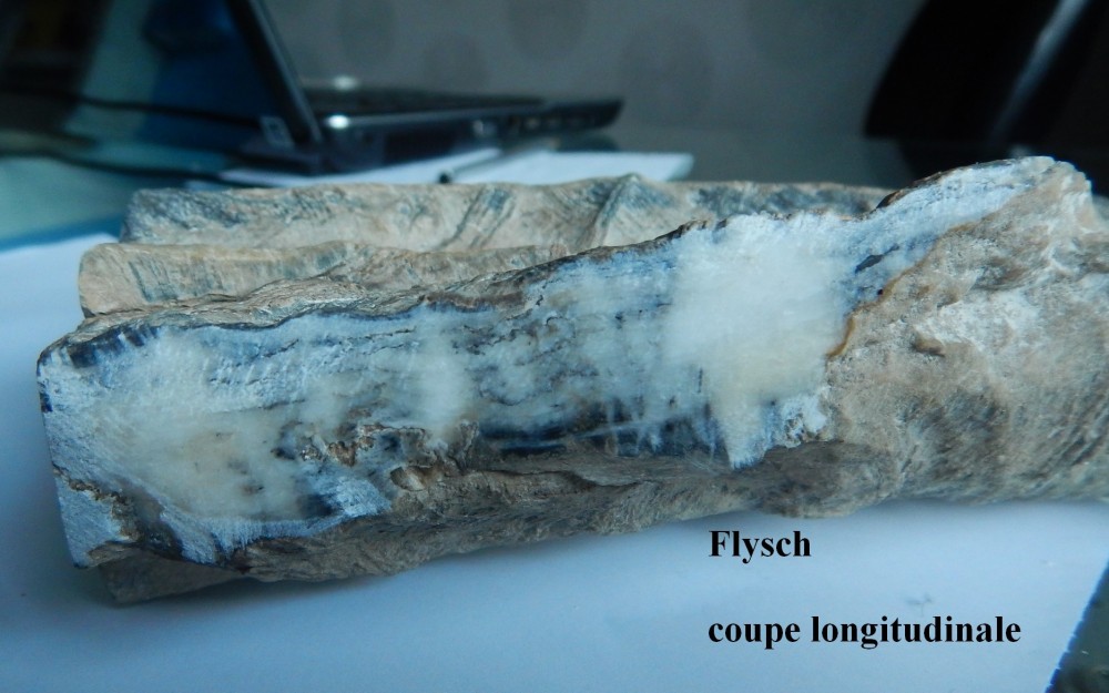 Le terme flysch est assez vague, ou plutôt il fait appel à une origine génétique des dépôts ( synorogénique), qui peuvent être détritiques, ou carbonatés. flysch gréso-pélitique, flysch calcaire. bref une photo d'échantillon ne fourni pas cette indication.
