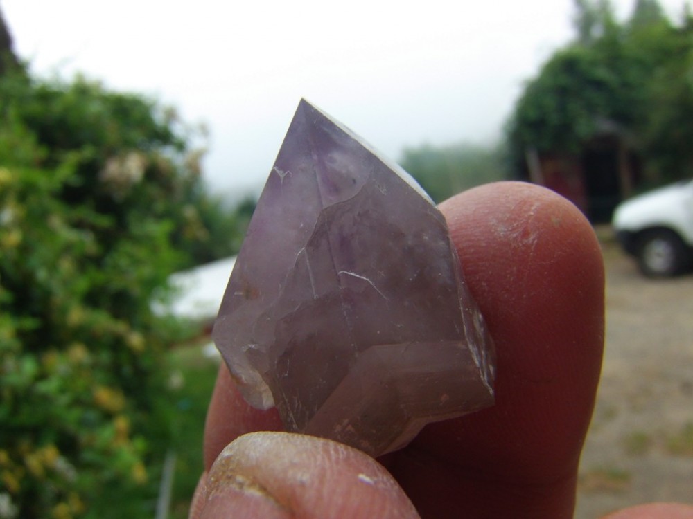 de retour de p.....r ou il a fait tres chaud comme partout d ailleur , heuresement que j avais le parassol , j ai continué a travailler le coin aux quartz améthysés , quelques pointes trouvées mais avec un peut plus de couleur ce coup ci