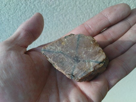 Lors d'une ancienne sortie à Coray pour les staurotides : un énorme cristal d'andalousite rose.