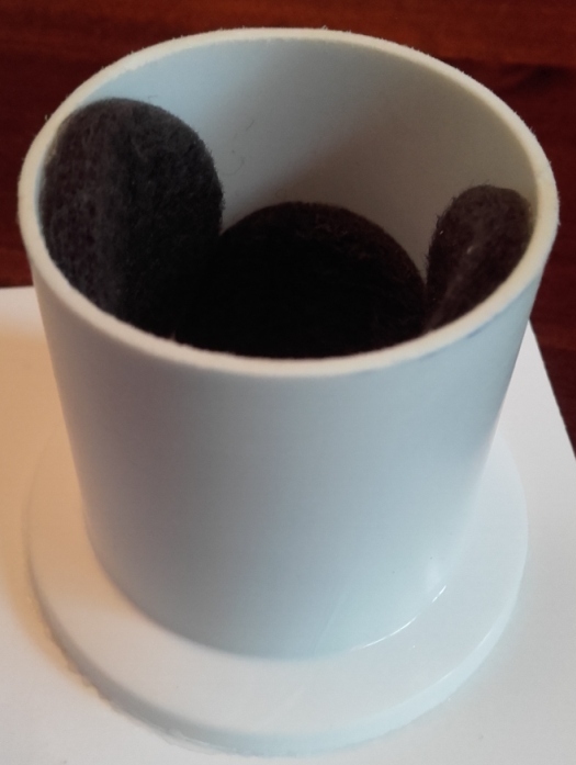 La longueur coupée correspond à la longueur de la partie lisse de l'optique de gauche. Pour rattraper la différence de diamètre (28 exter pour l'optique et 34 inter pour le tube), 4 tampons en feutrine sont positionnés à l'intérieur. Les deux pièces peuvent alors s'ajuster et se régler par frottement, sans forçage excessif.