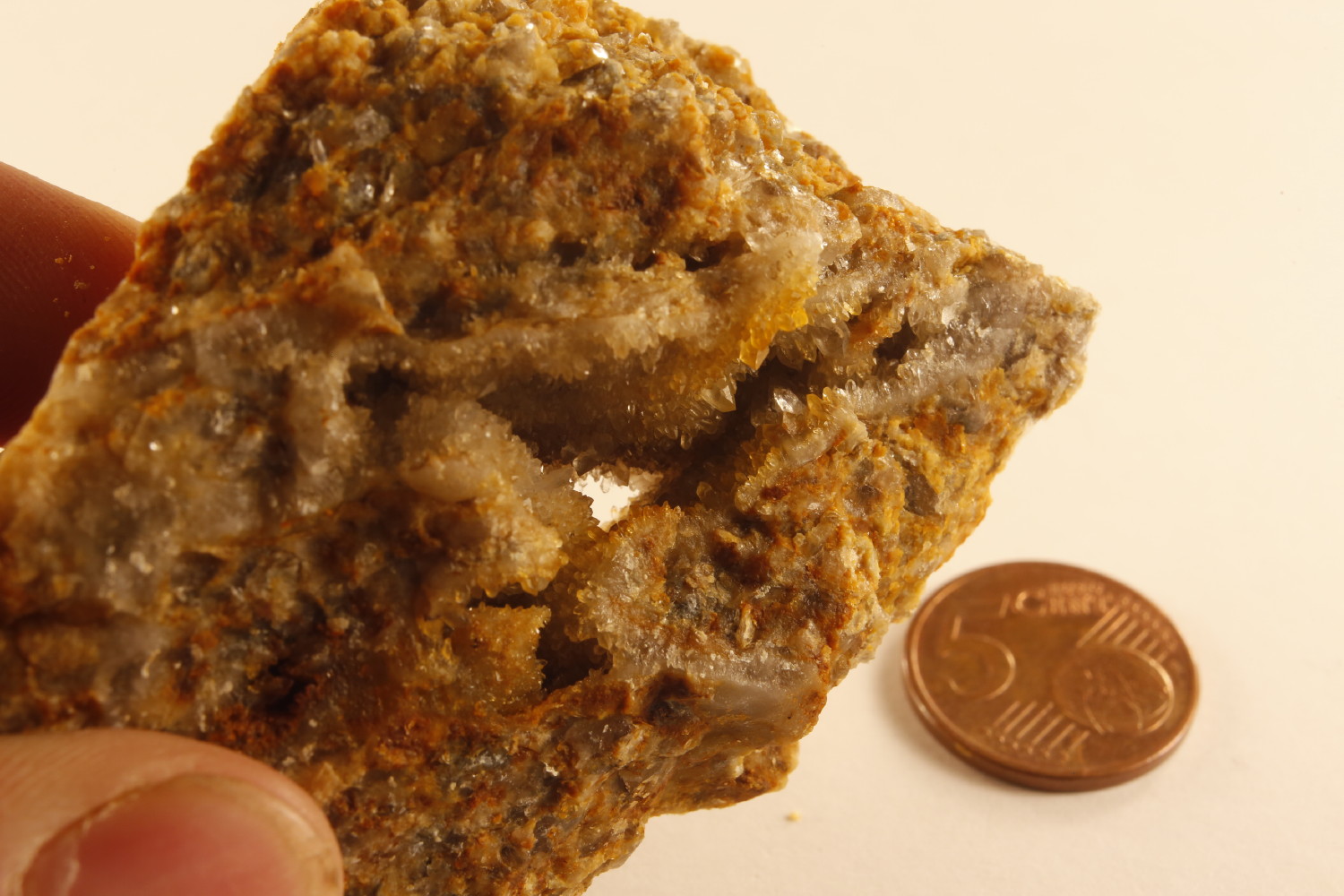 J'ai retrouvé un filon de quartz dans le granite altéré et juste derrière une jolie petite poche de cristaux :)