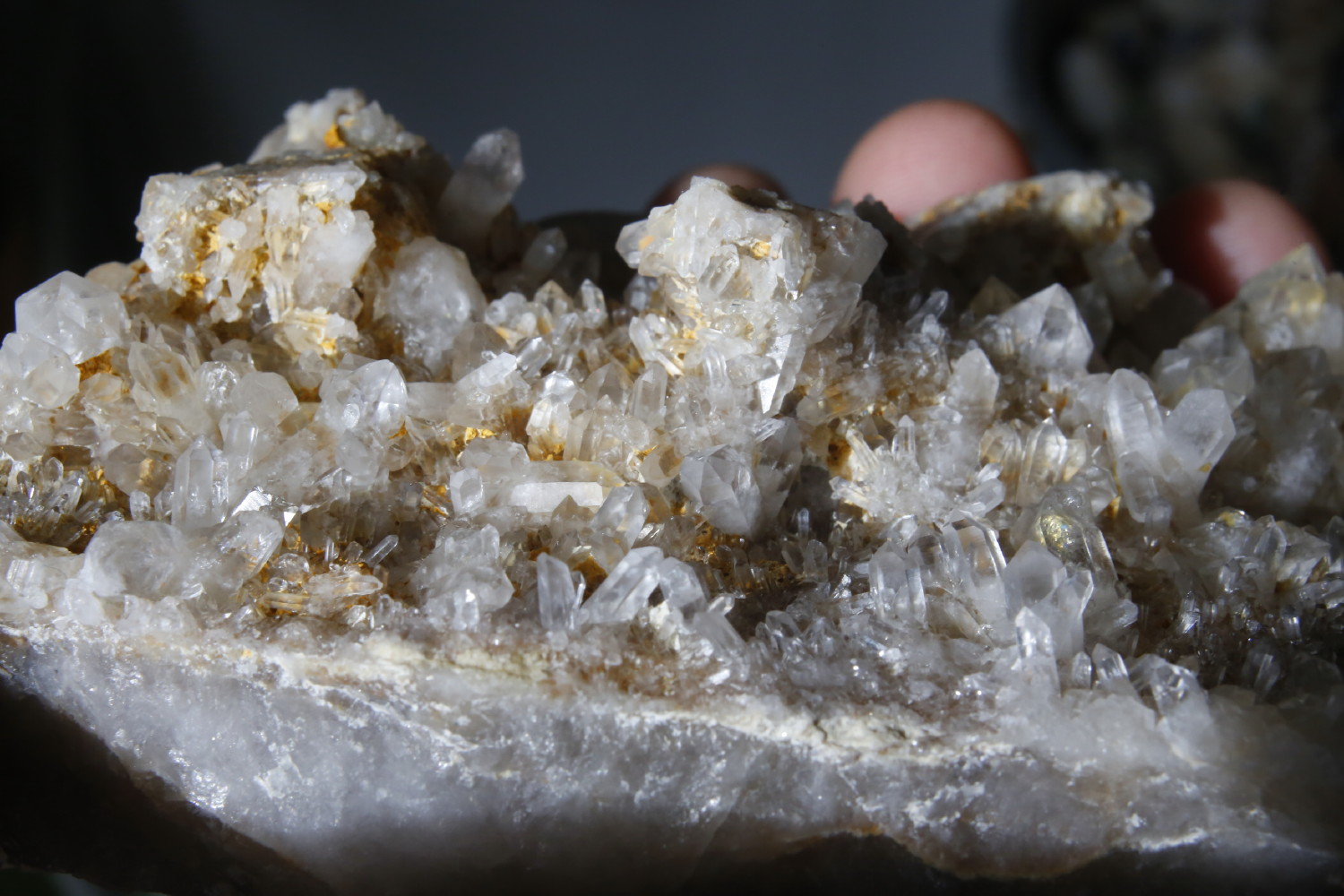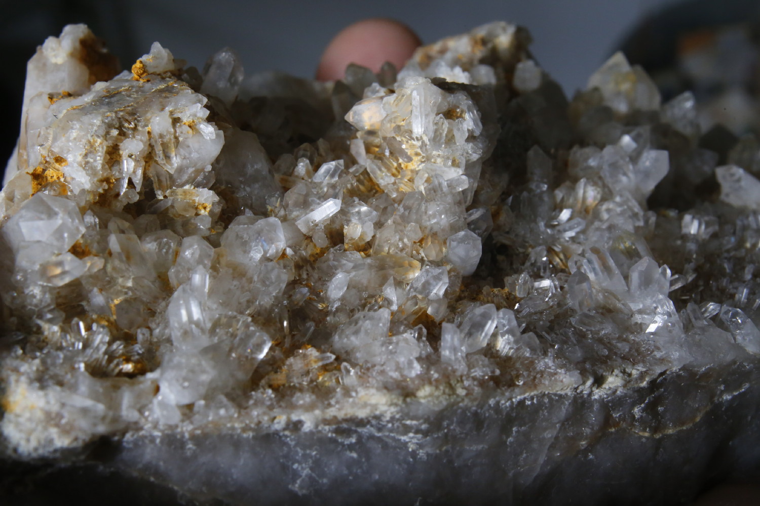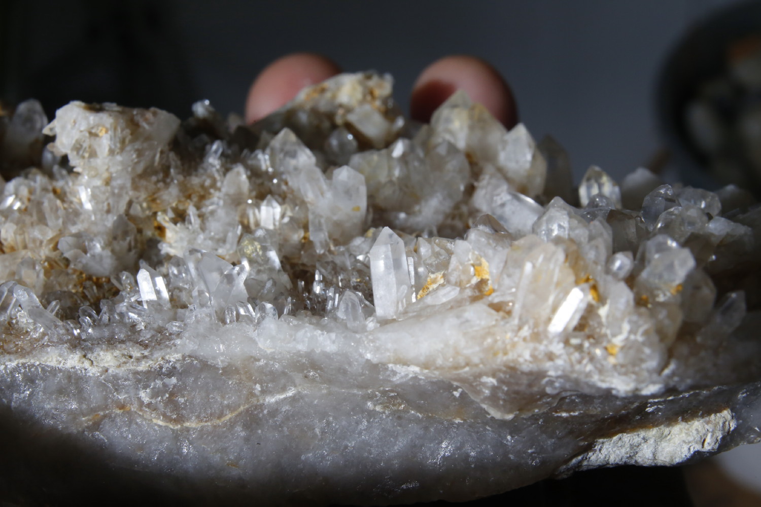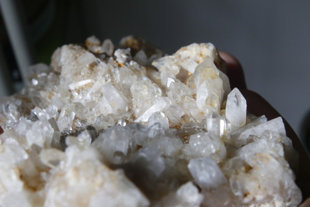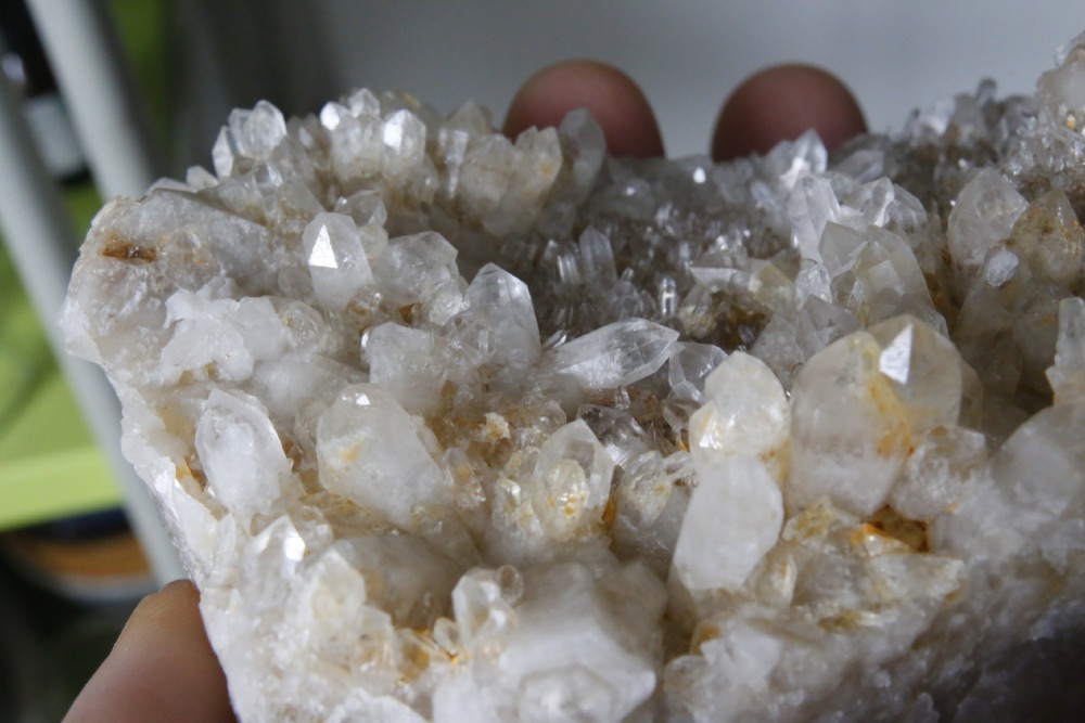 Quelques photos de la plaque de cristaux de quartz de Carquefou (44) après un bon grattage à l'aiguille et 5 jours de bain désoxydant, ça commence à ressembler à quelque chose ;)