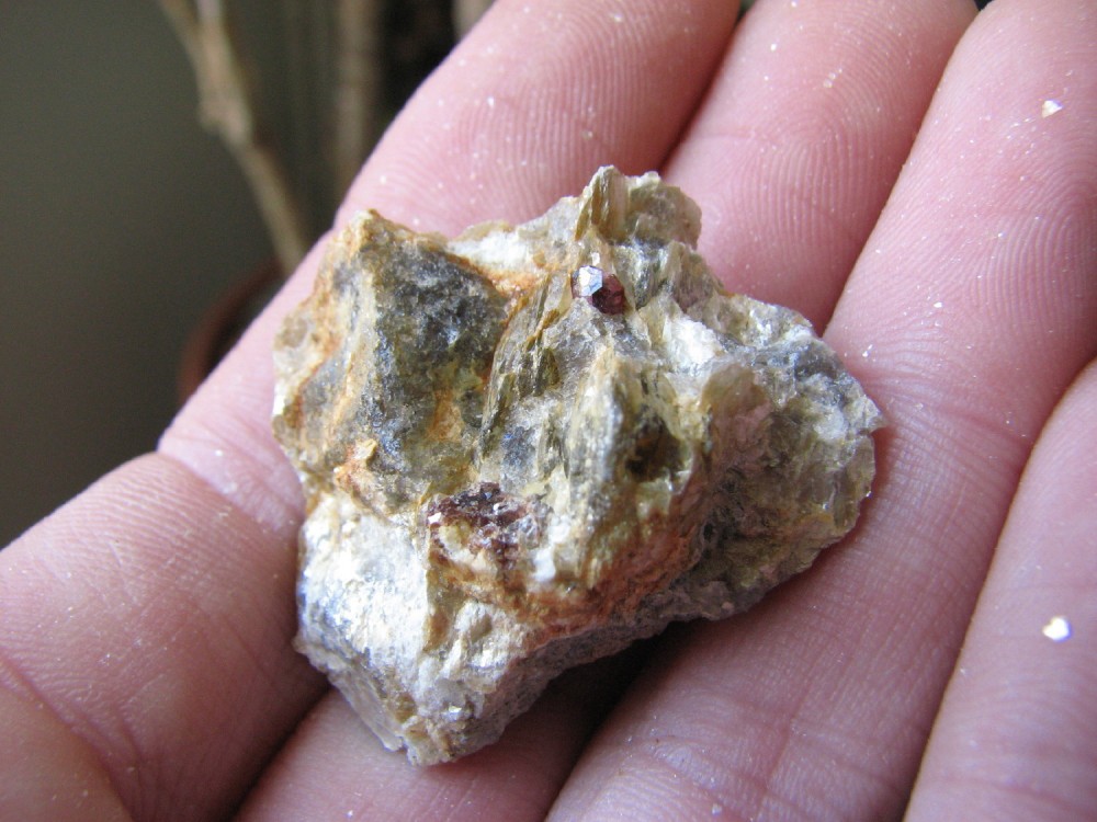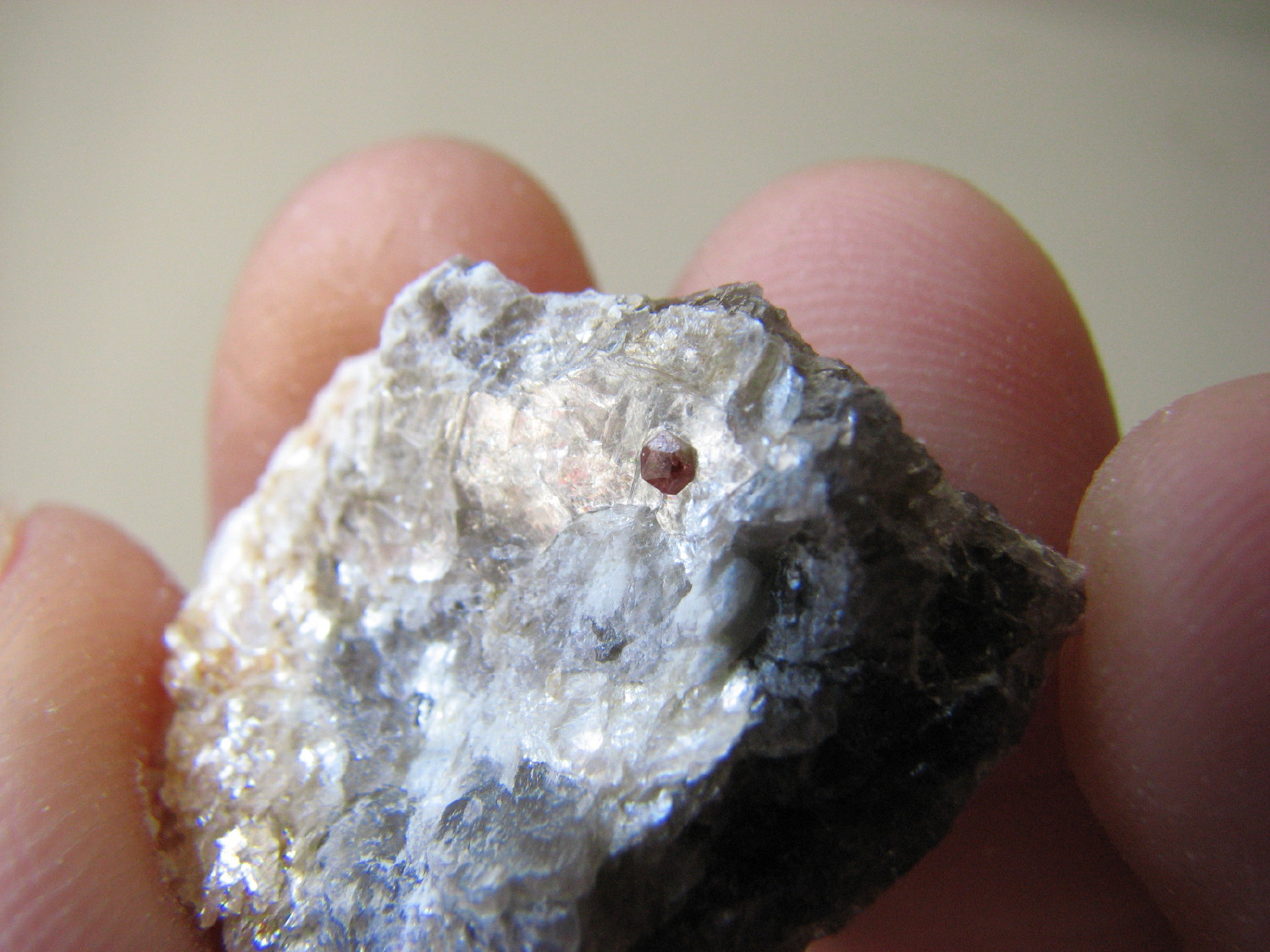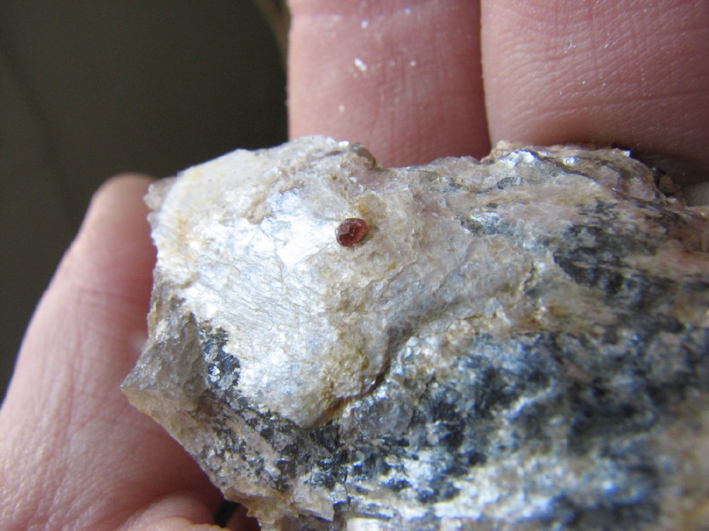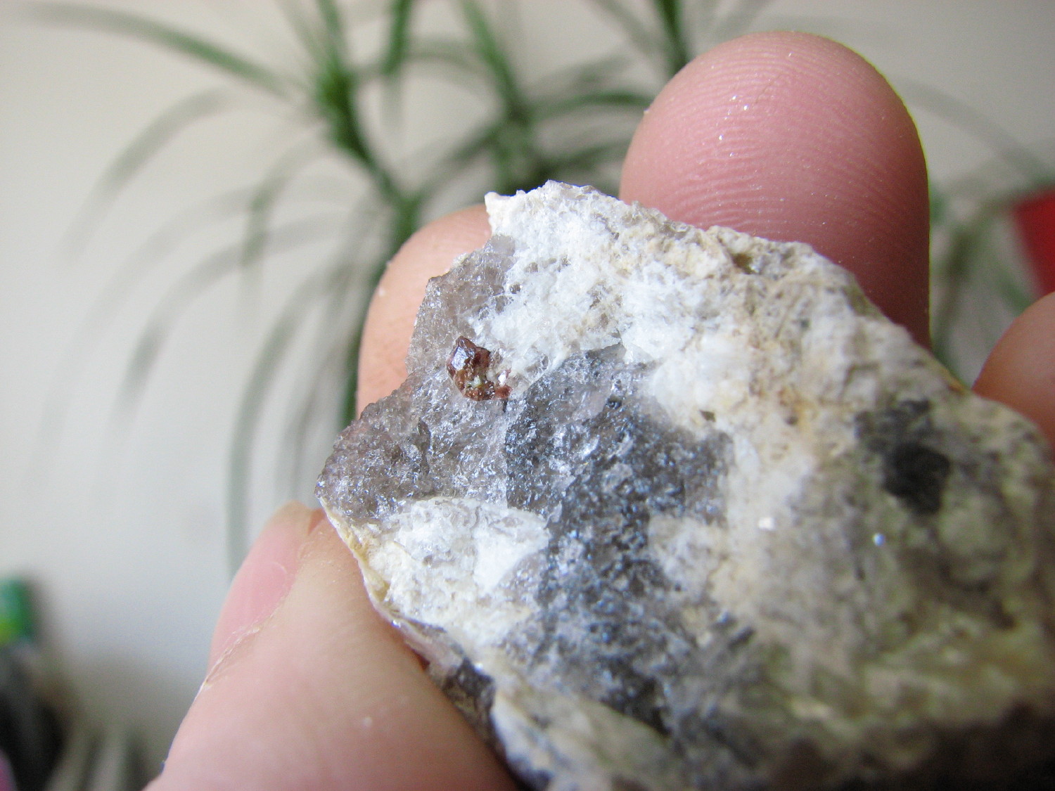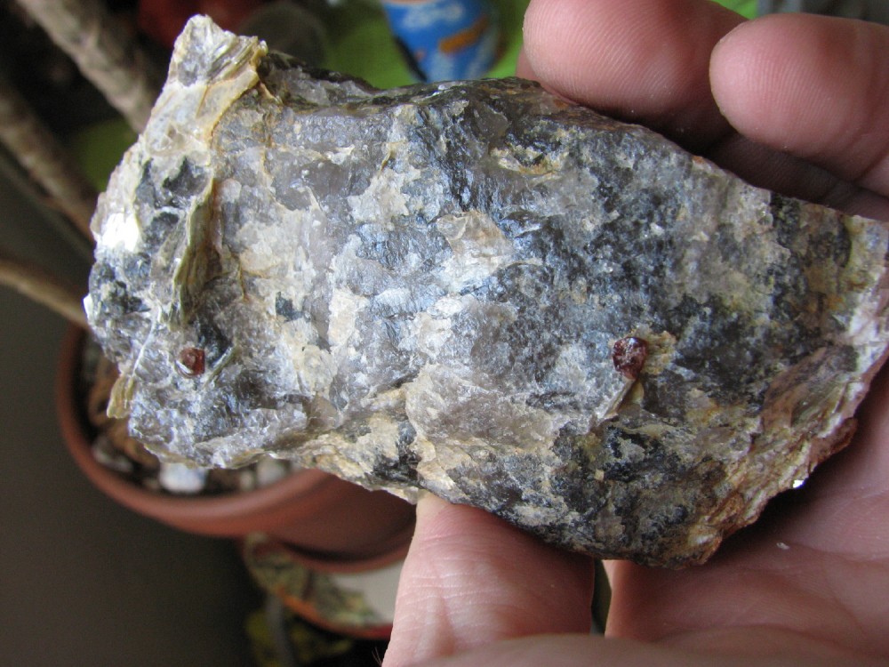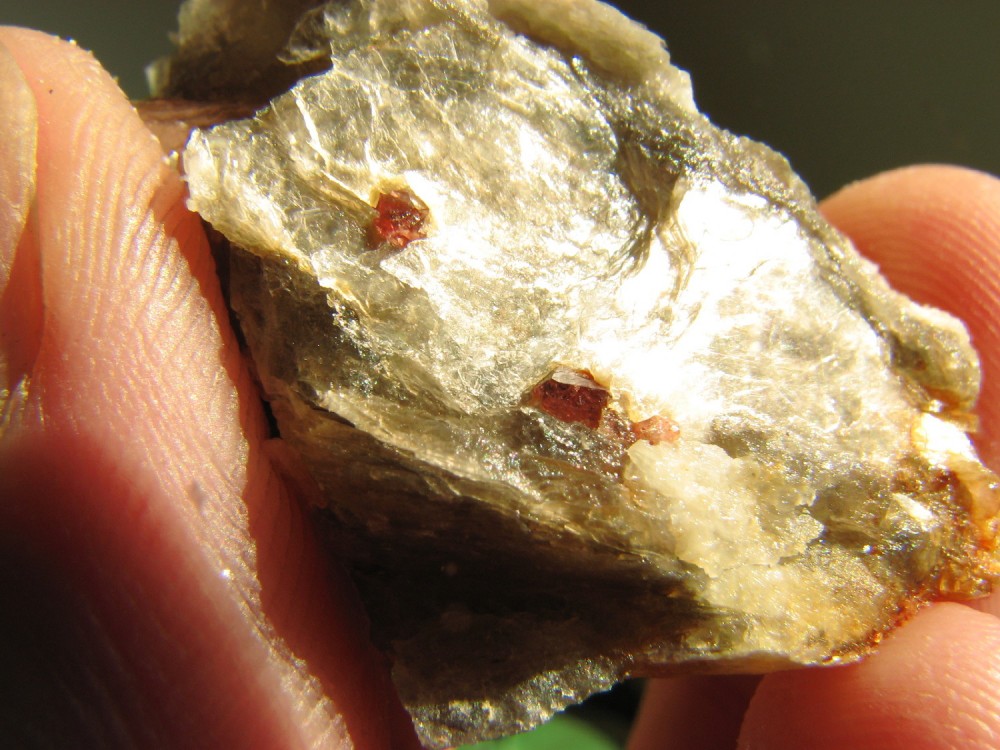 J'ai pensé à toi cet aprèm, lors de l'échange je n'avais pas de grenats d'Orvault dans leur gangue, et bien j'en ai trouvé de très beaux associés à de l'apatite, pris dans le quartz et la muscovite.