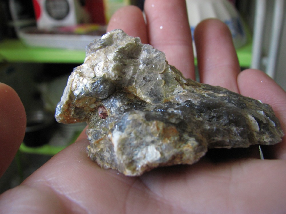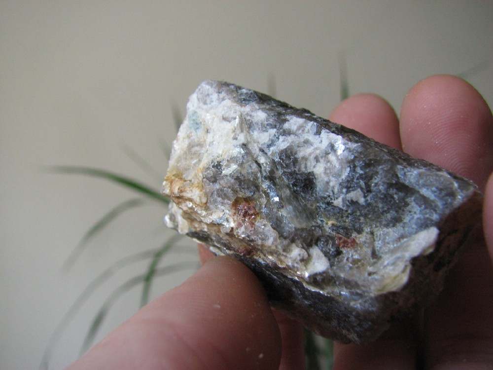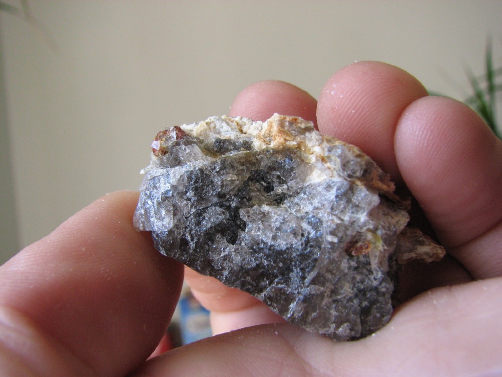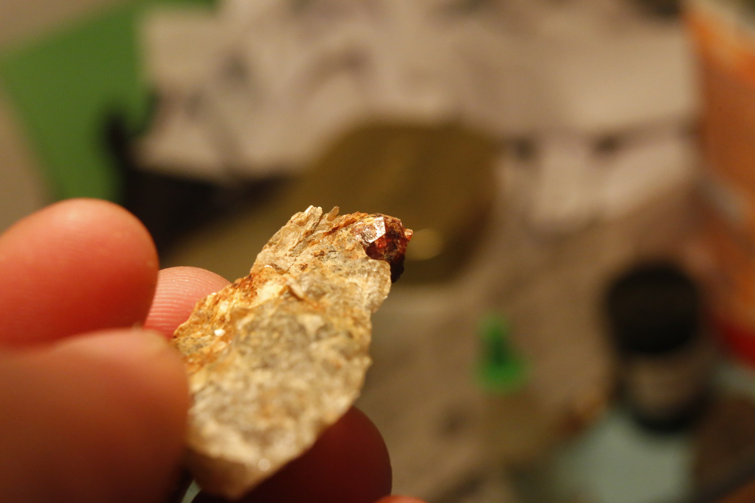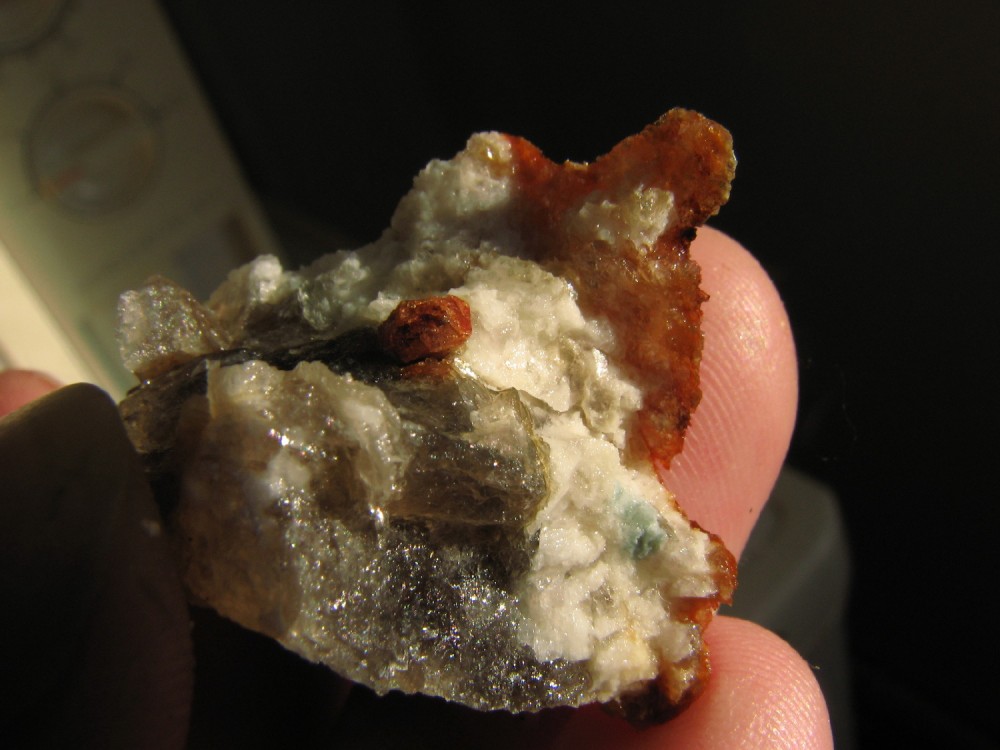 J'ai pensé à toi cet aprèm, lors de l'échange je n'avais pas de grenats d'Orvault dans leur gangue, et bien j'en ai trouvé de très beaux associés à de l'apatite, pris dans le quartz et la muscovite.
