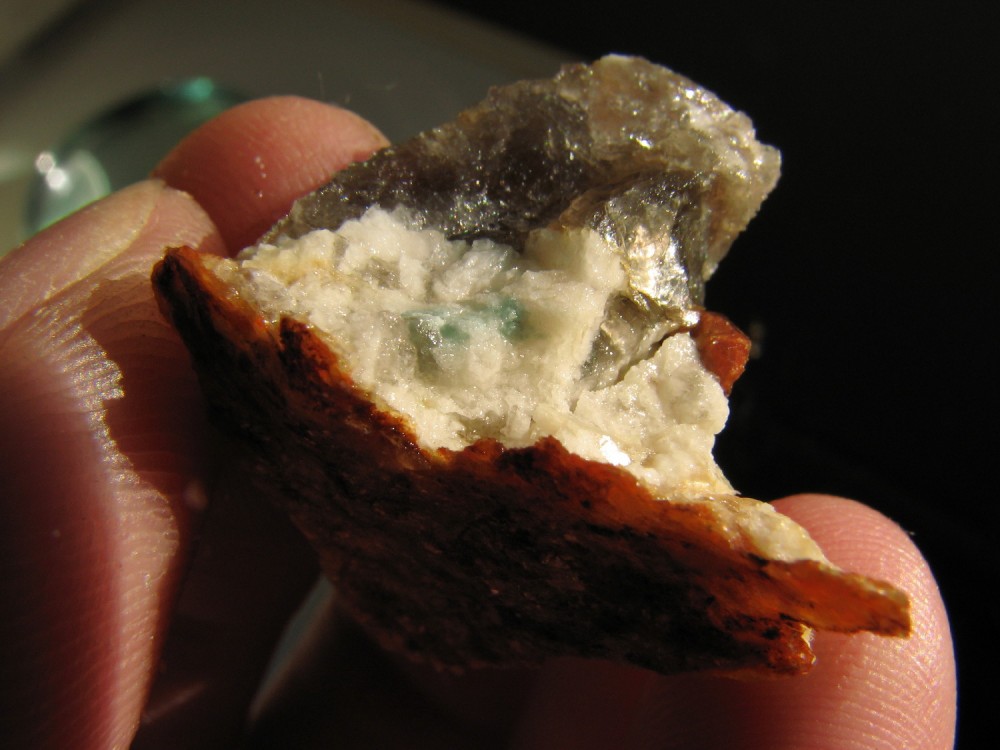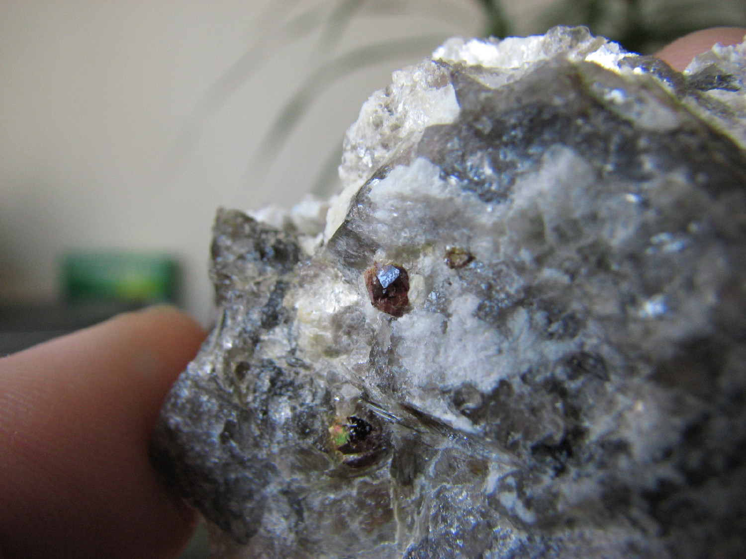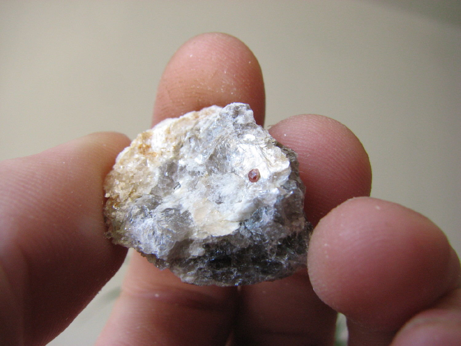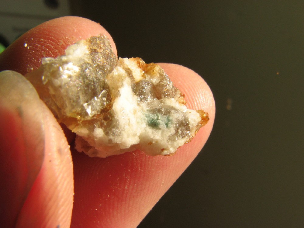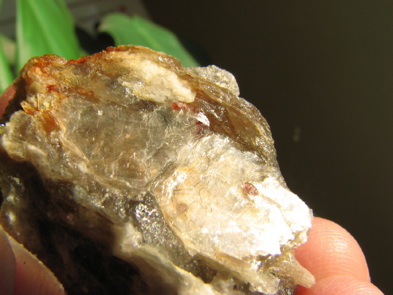 J'ai pensé à toi cet aprèm, lors de l'échange je n'avais pas de grenats d'Orvault dans leur gangue, et bien j'en ai trouvé de très beaux associés à de l'apatite, pris dans le quartz et la muscovite.