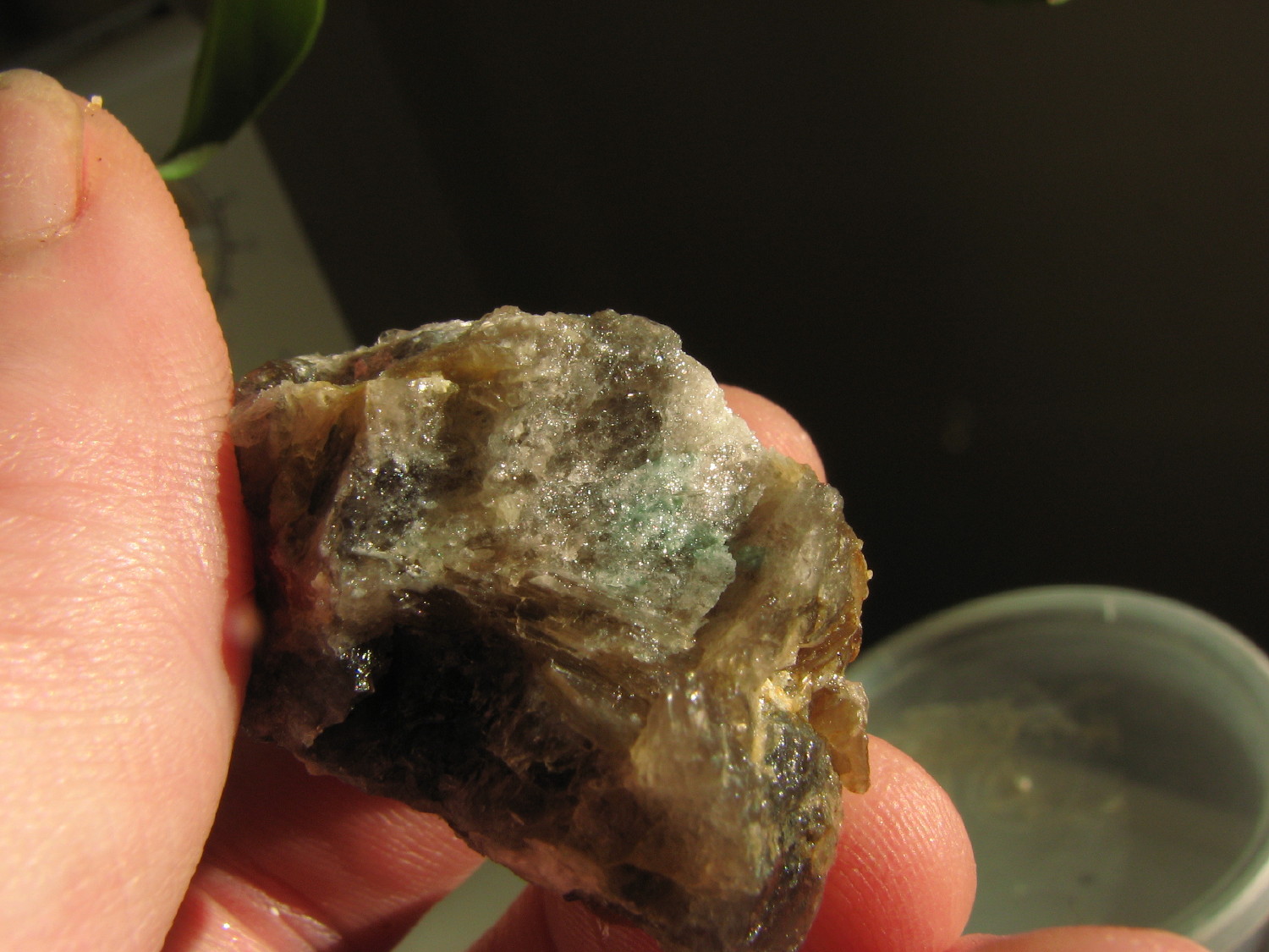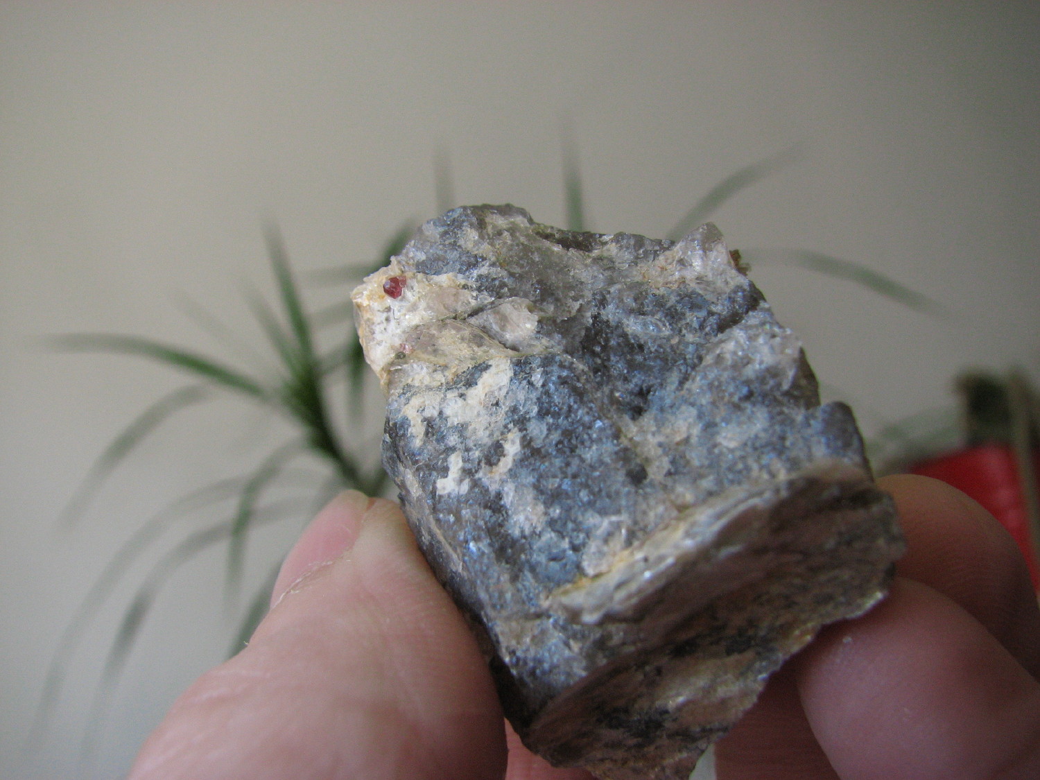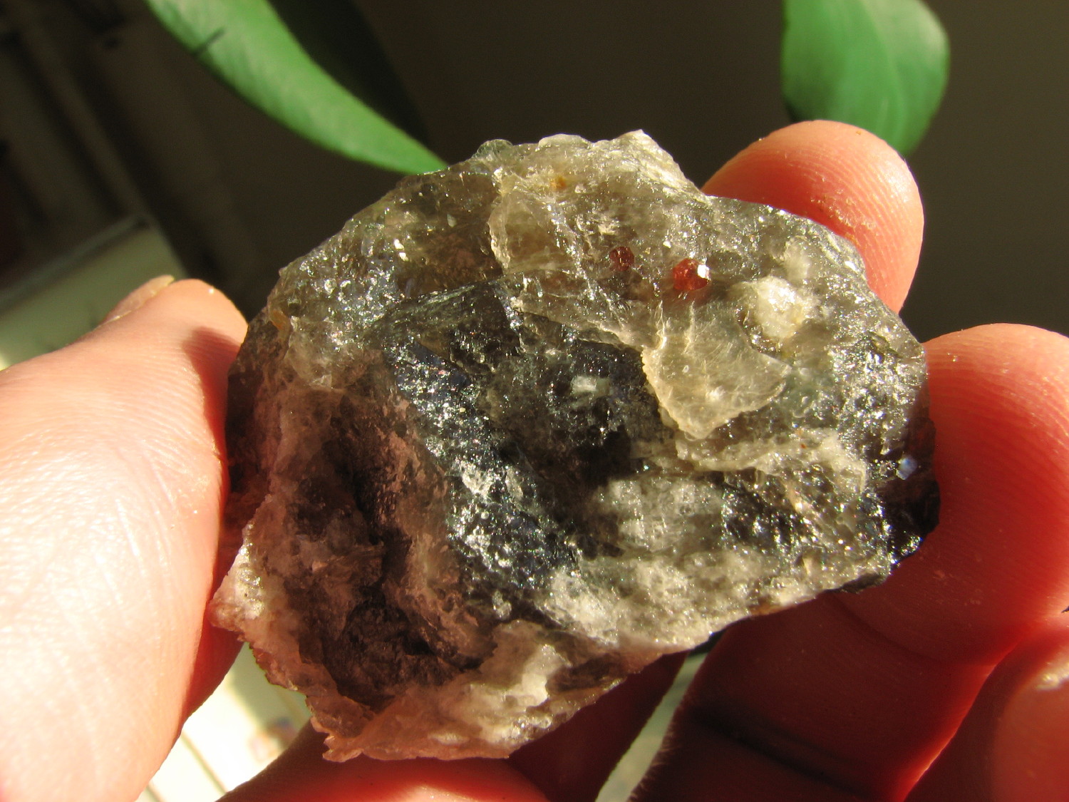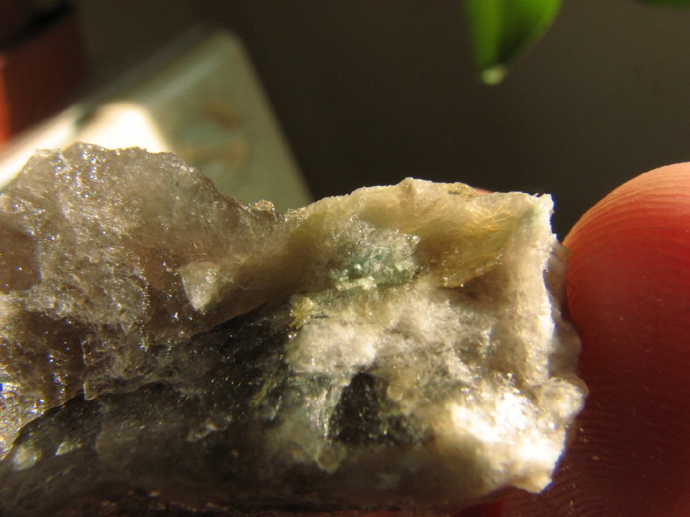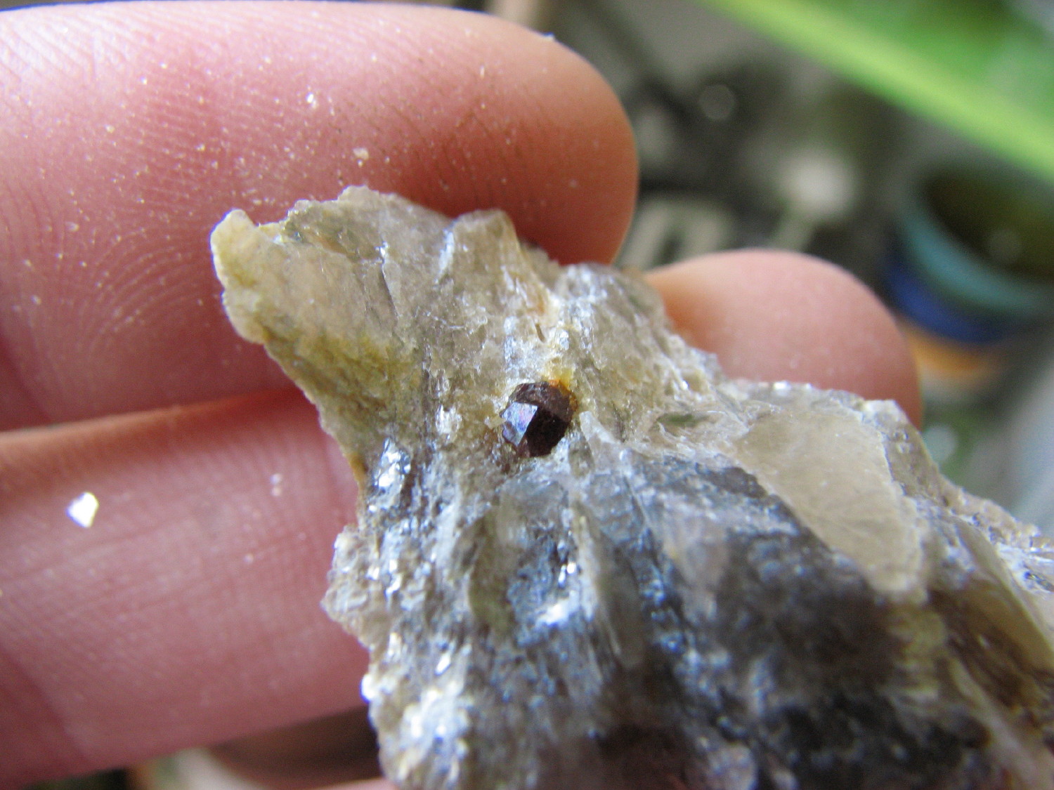 J'ai pensé à toi cet aprèm, lors de l'échange je n'avais pas de grenats d'Orvault dans leur gangue, et bien j'en ai trouvé de très beaux associés à de l'apatite, pris dans le quartz et la muscovite.
