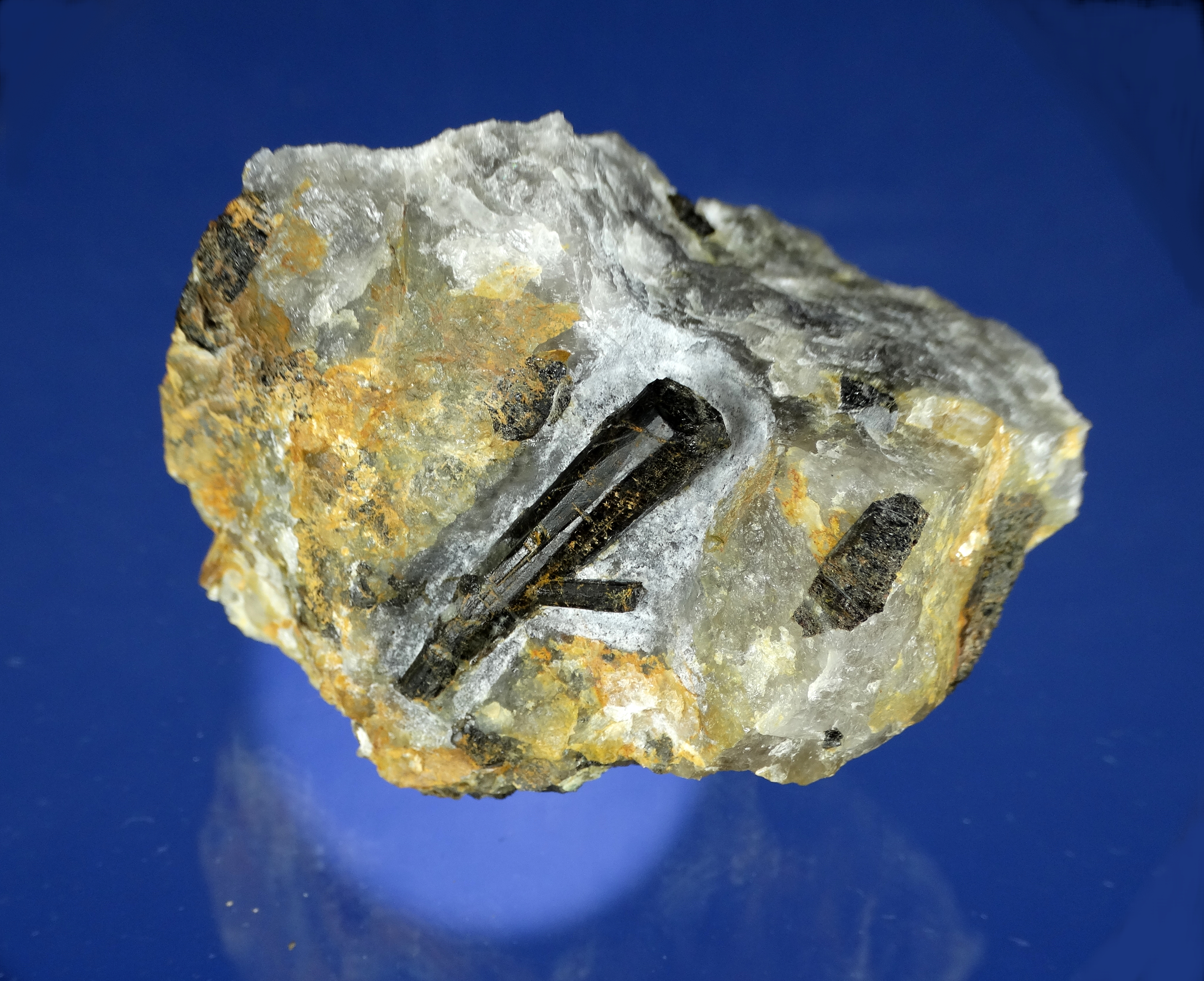 3 petites baguettes  de schorl flottantes terminées et cassées puis recristallisé