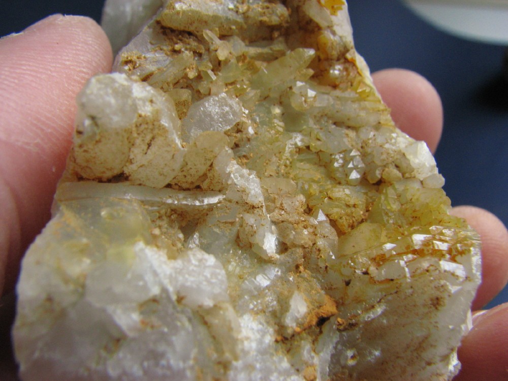Tu pourrais avoir des autunites de planquées ici et là (mais en cristaux si fins qu'ils sont translucides). ;)