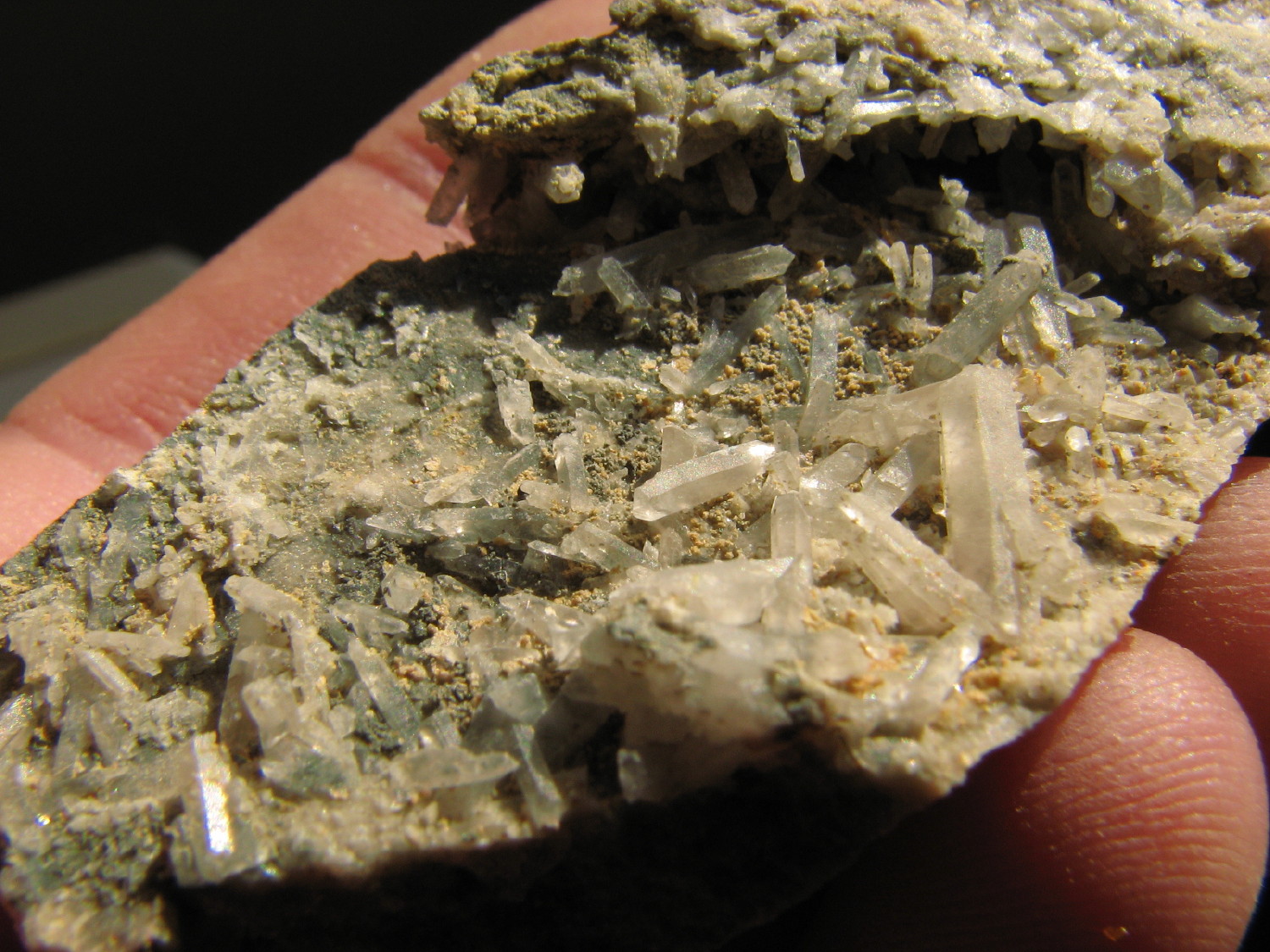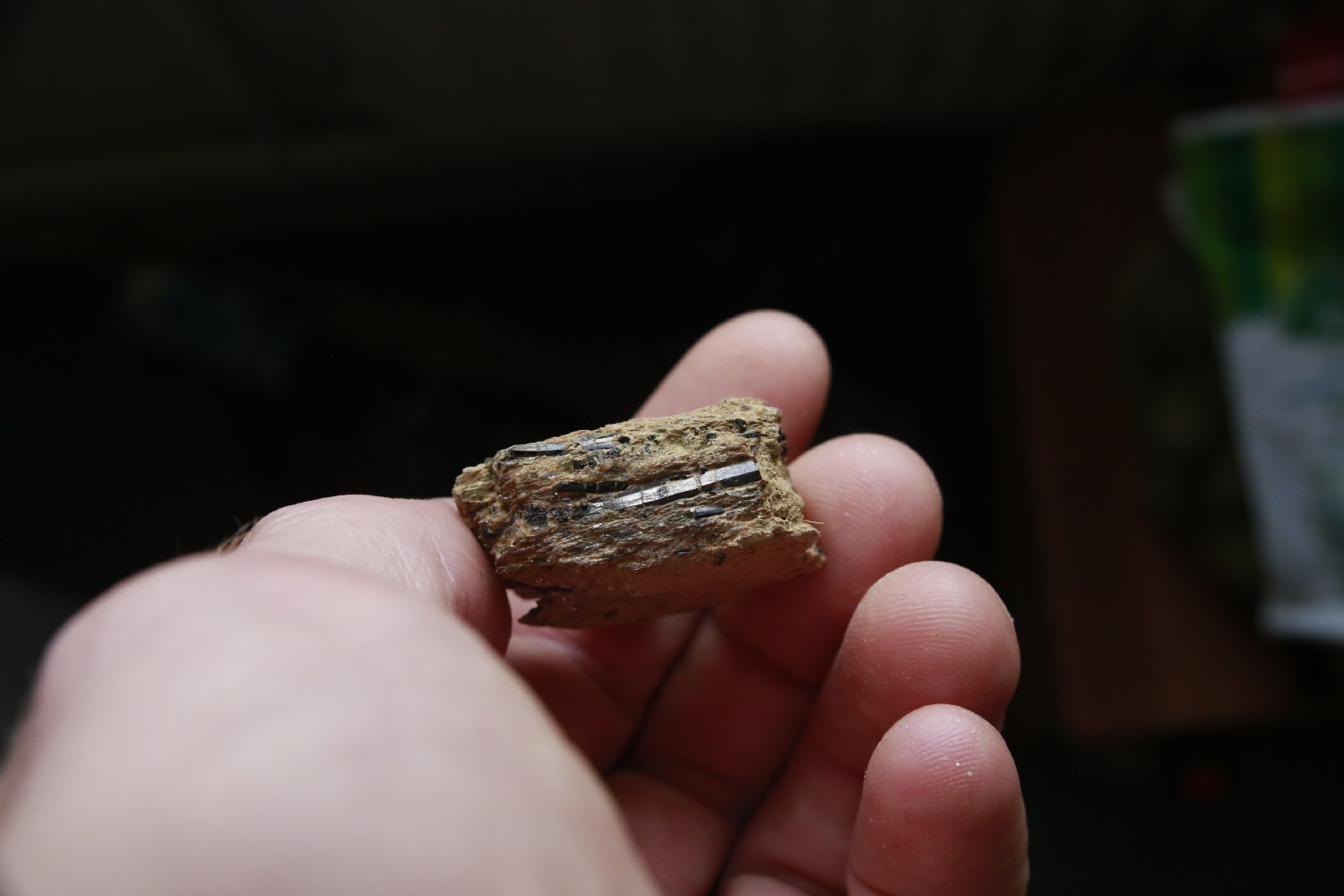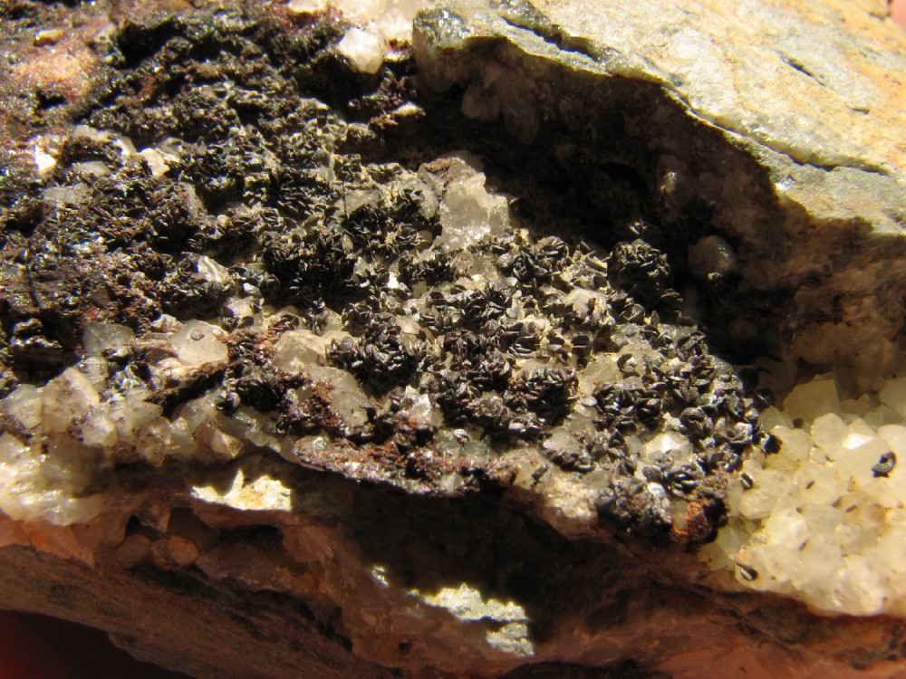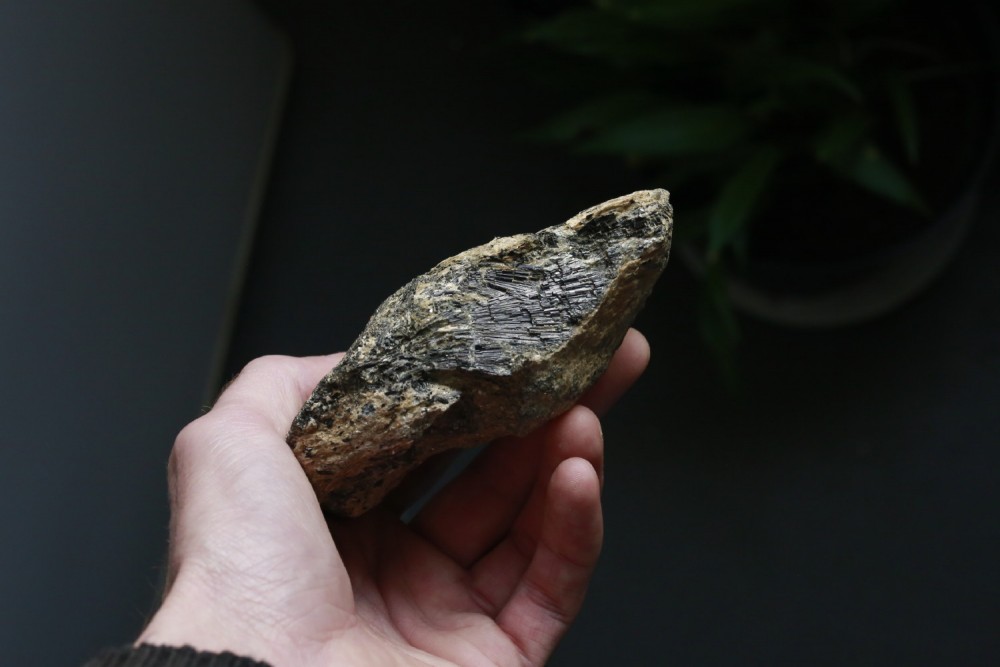 Bonsoir ! Une petite trouvaille de la semaine dernière, gerbes de tourmalines sur micaschiste, Orvault (44), vallée du Cens :