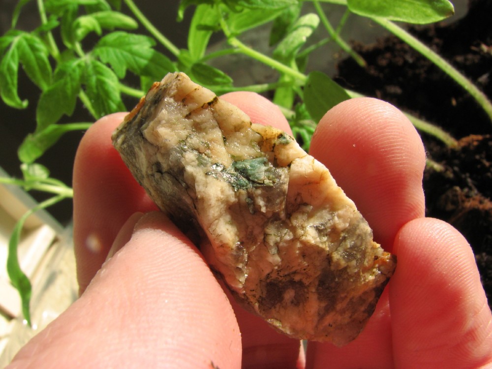 - Pour finir un morceau de pegmatite à grenats avec apatite de la Butte St Anne à Nantes :