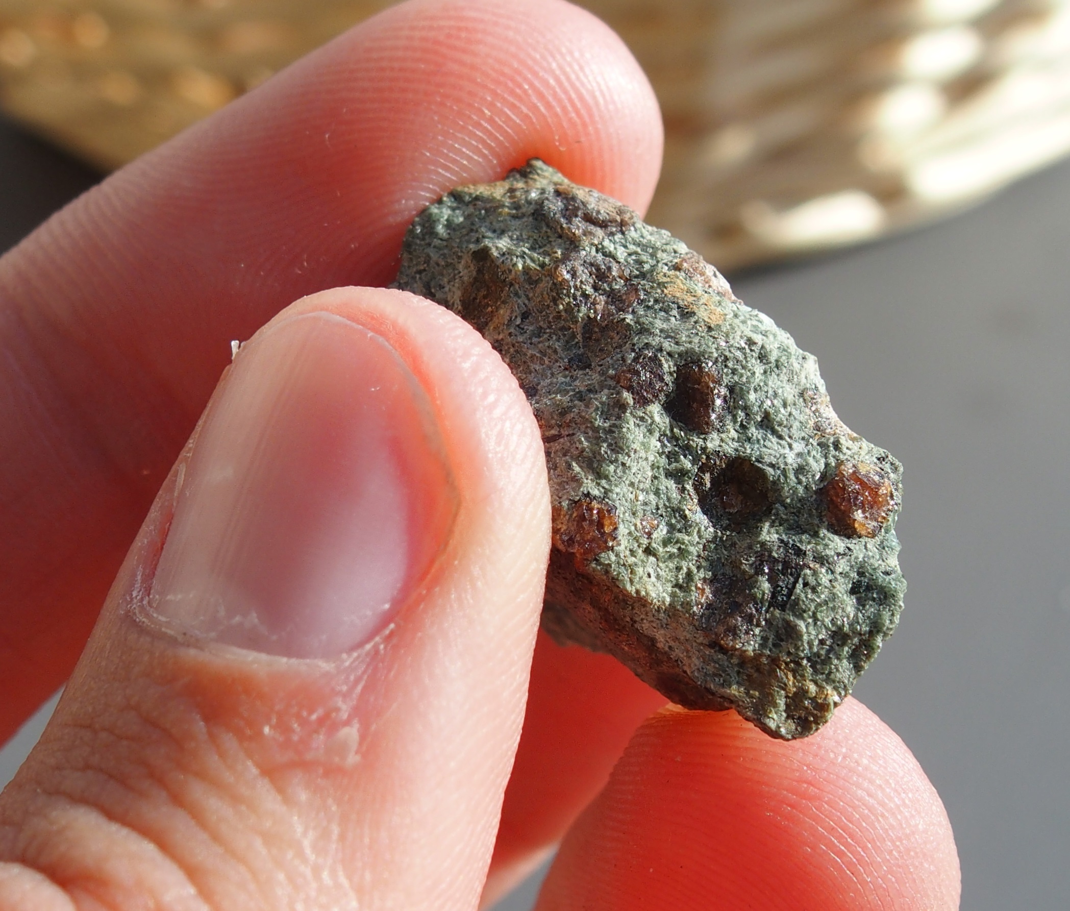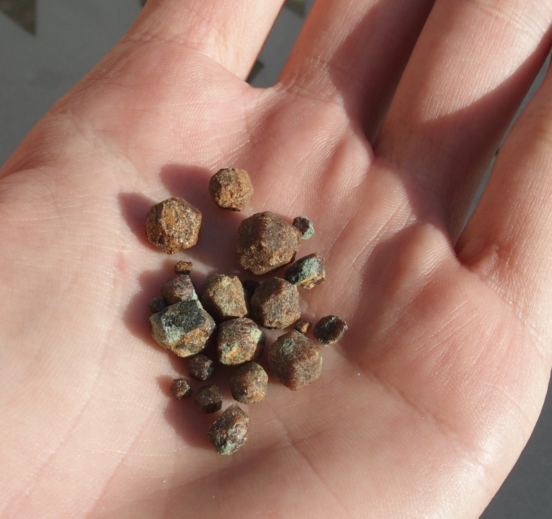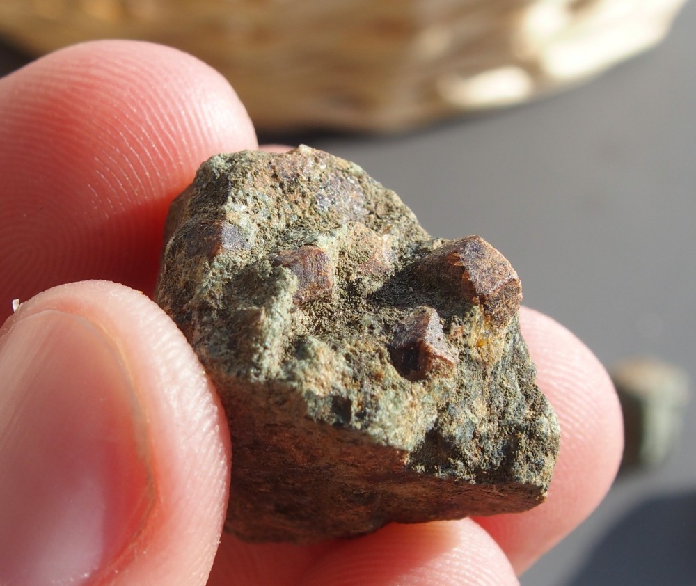 Pour commencer des grenats sur une matrice d'éclogite, trouvés au chemin de l'éclogite à St Philbert de Gd-Lieu :