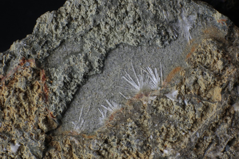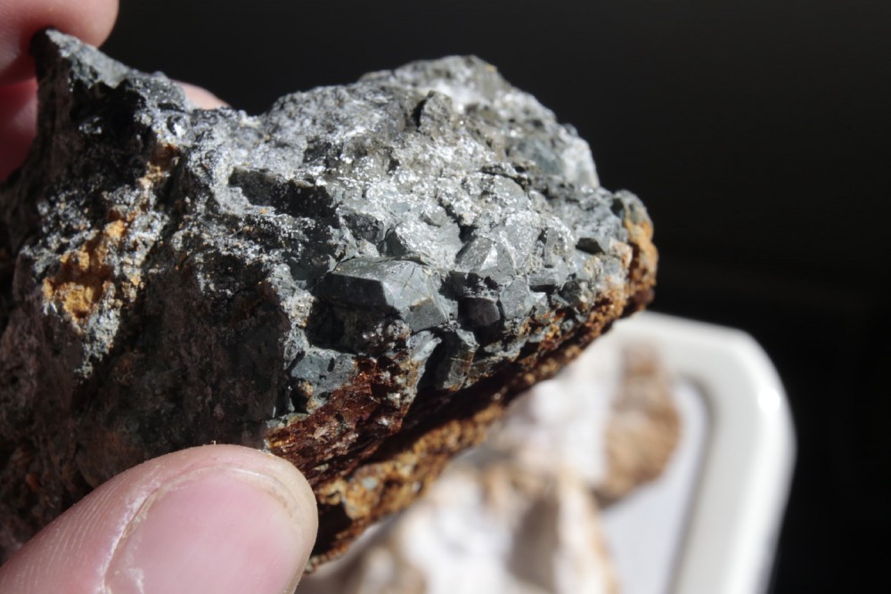 La gangue est intrigante, blanchie et 'crayeuse' comme un 'granite' qui aurait été totalement altéré dans la masse