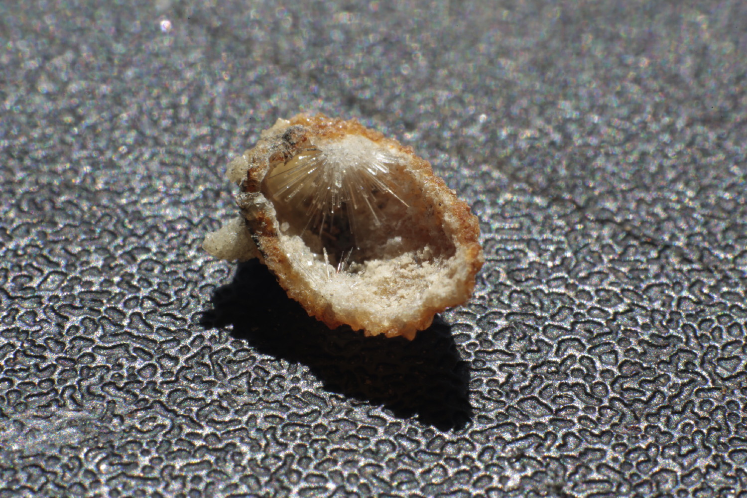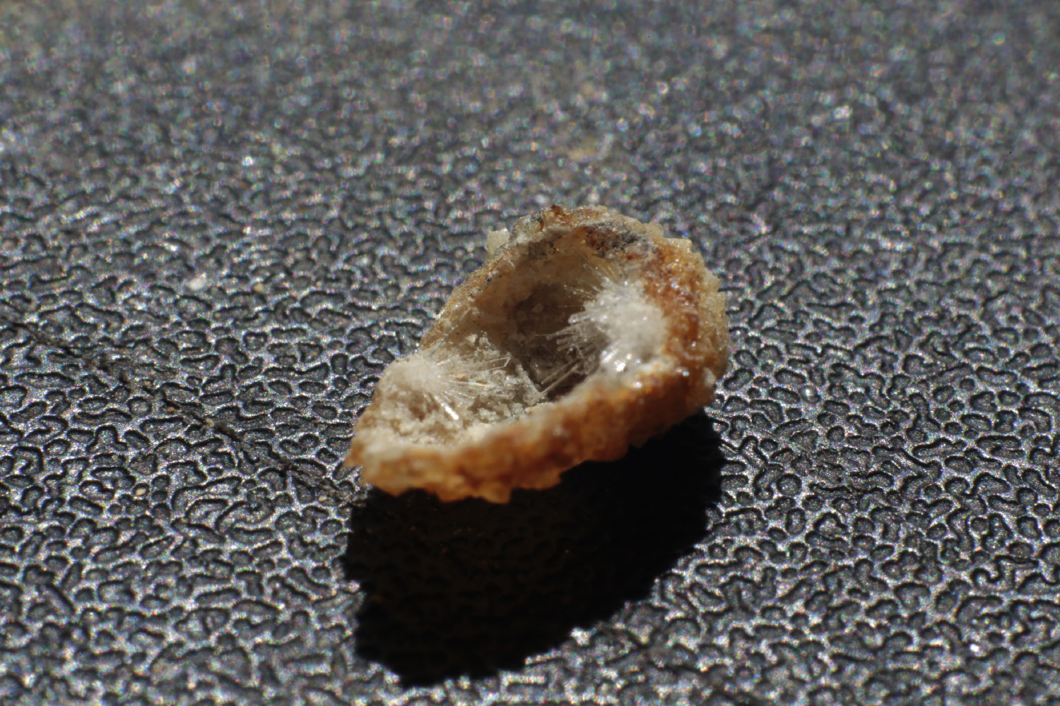 J'ai réalisé quelques tests à l'acide sur les géodes, aucune réaction visible si ce n'est que l'acide devient jaune pétant à leur contact.