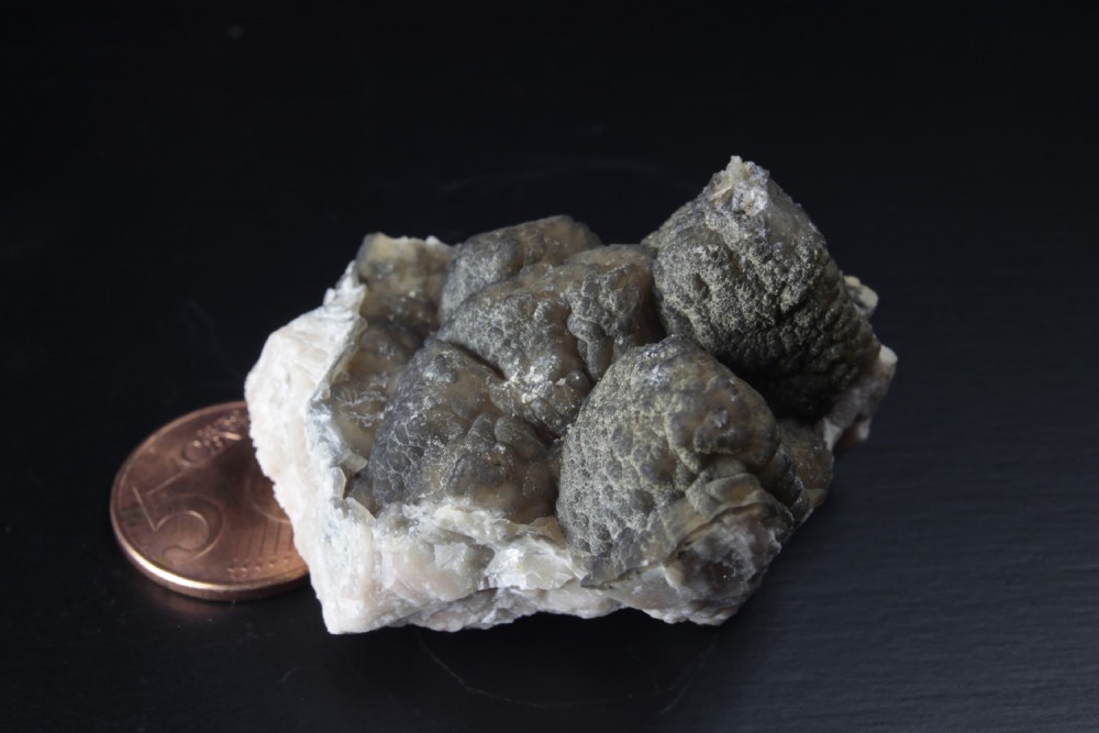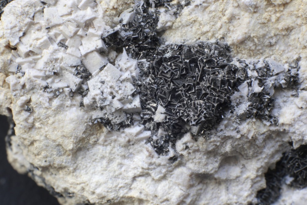 Sinon le minéral noir est curieux, on dirait qu'il vient juste en recouvrement du minéral blanc. Pyrite pourquoi pas. Les figures sont très esthétiques.