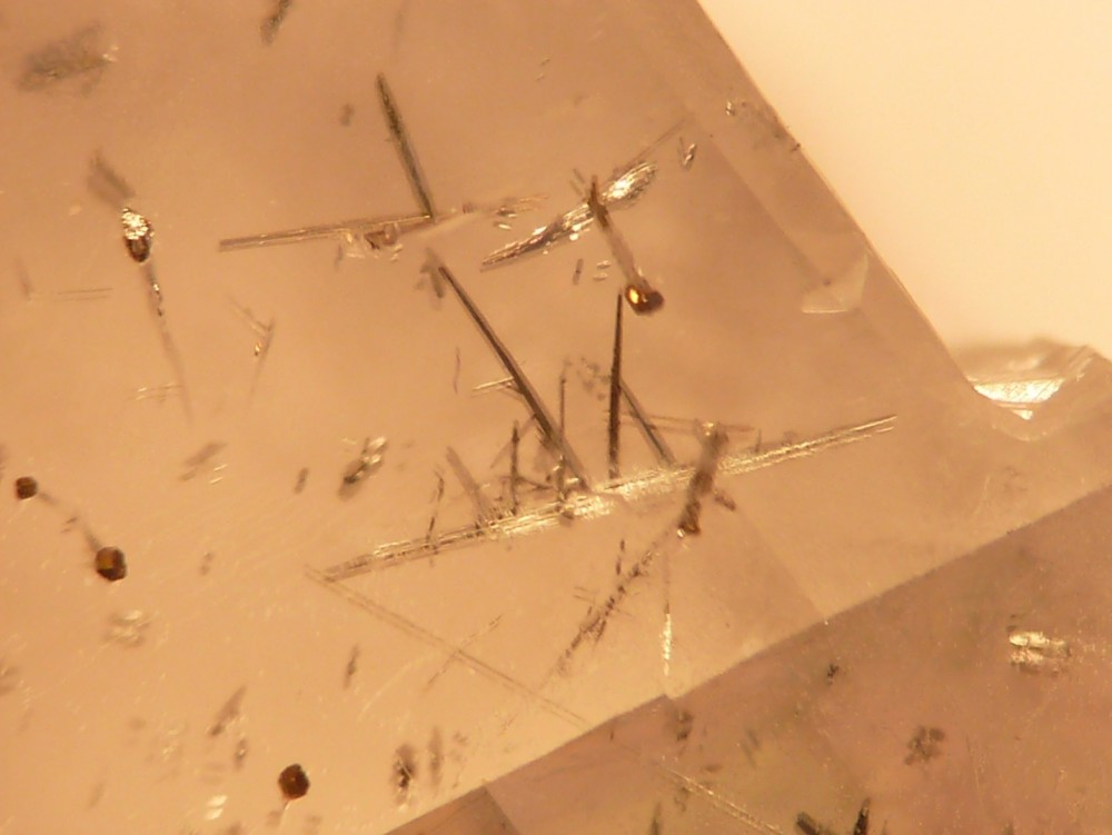 Je voudrais vous présenter deux modestes Calcites provenant de la carrière d'Erbray (44). Le plus intéressant ne sont pas ces deux Calcites, mais ce qui se trouve à l'intérieur. En effet on aperçois assez bien des "baguettes" dans la Calcite En voici des photos: Je m'interroge sur ces "Baguettes"  Pyrite ? Rutile ? Stibine ?