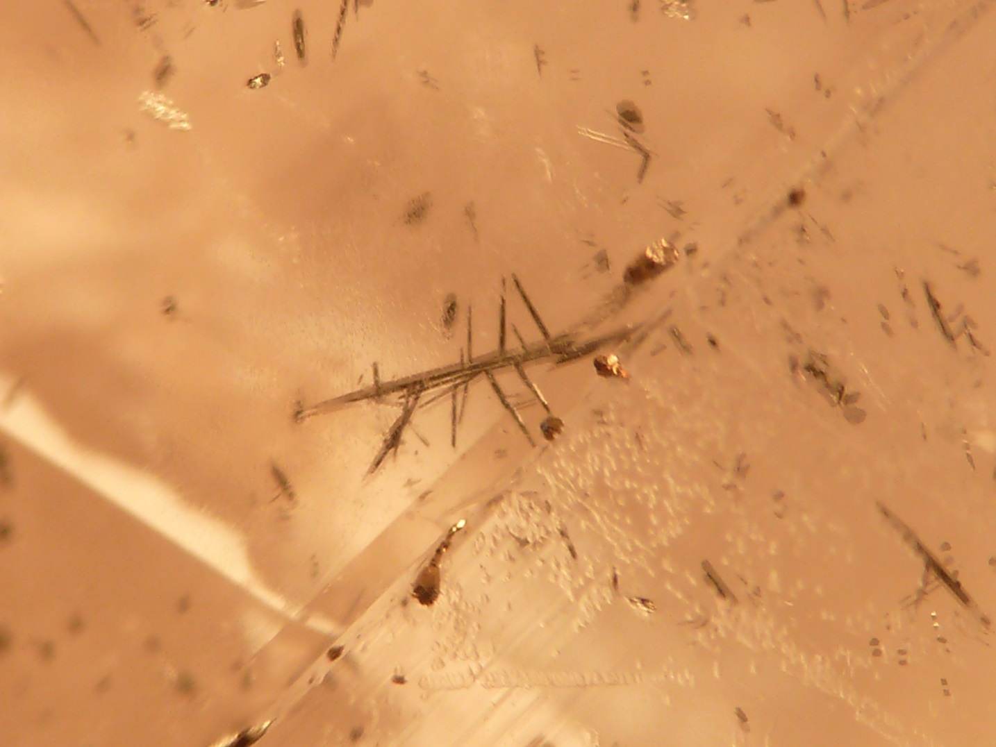 Certaines photos paraissent doublées ou floues, en fait je pense qu'il doit s'agir d'un phénomène de diffraction de la lumière dans la Calcite.