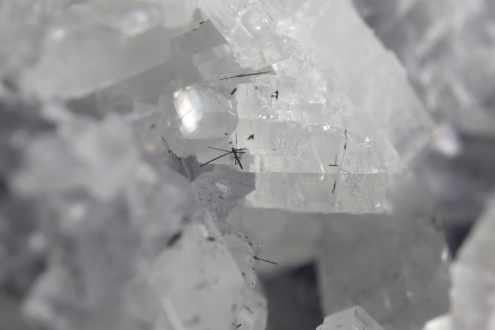 Les cristaux sont de l'ordre du cm, à noter le cristal un peu plus long sur la gauche.