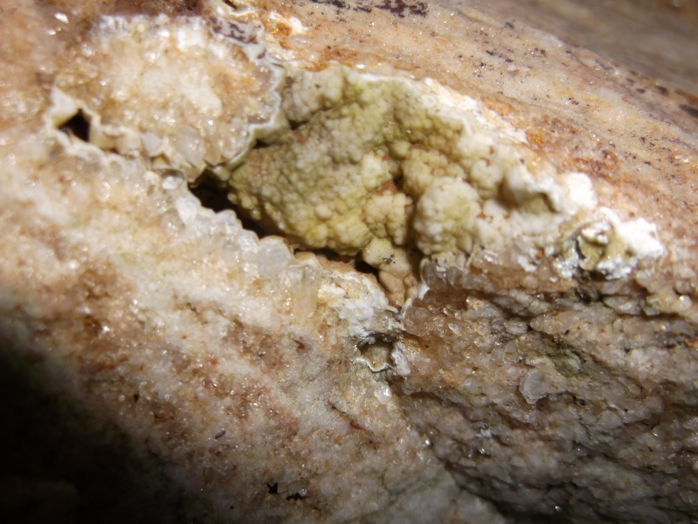 Les cristaux de quartz présent étant très peu érodés et dans un état plutot joli je trouve étrange que sur une petite zone ça ne soit pas le cas du tout...