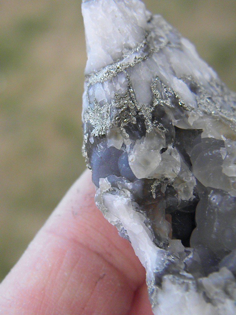 En poursuivant la prospection, sur place, et surtout grâce au dernier tir de mine, j'ai pu remettre la main sur les filons de quartz qui présentent de jolies calcédoines (enfin!).