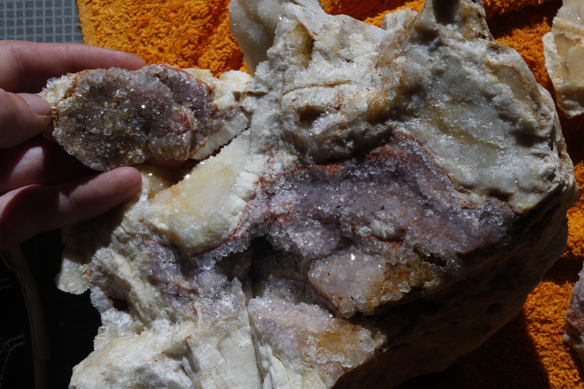 - Pour finir, des géodes oranges trouvées dans un gros bloc de quartz carié du même coin, la forme des cristaux me laissent perplexe ^^'
