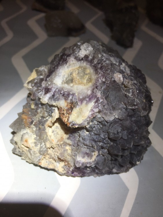 Toujours la même carrière, j'avais déjà récupéré quelques pièces de même faciès, que je crois être du quartz polyédrique. Les experts infirmeront ou confirmeront.