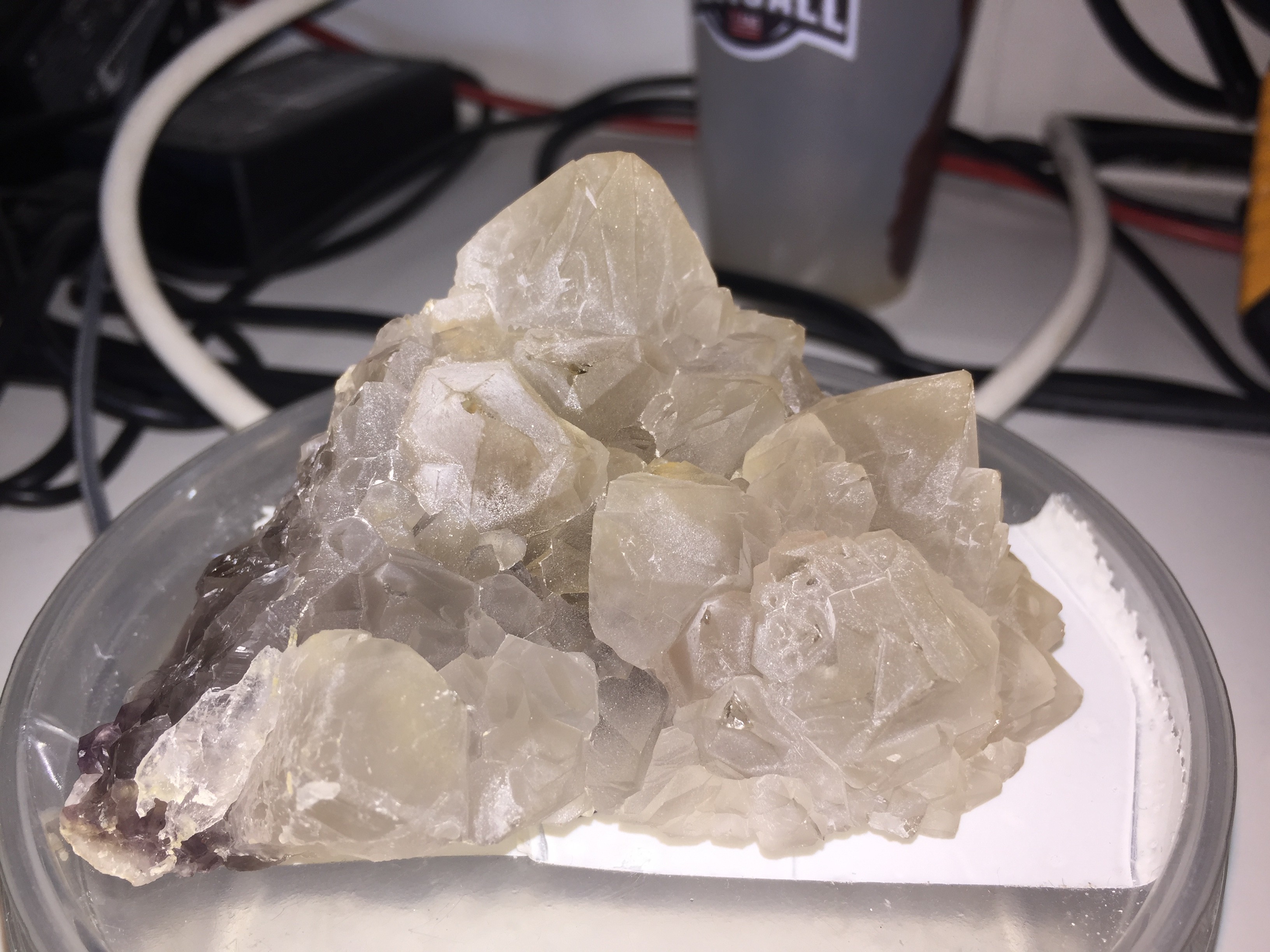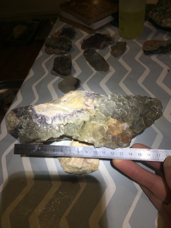 Et une grosse pièce d'améthyste avec malheureusement des dépôts de silice sur la moitié des faces (pas trop visible sur la photo car pièce encore humide) :