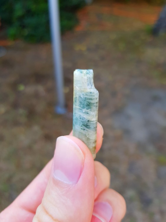 Apatite bleue de Ménez-Gouaillou, Finistère. 3,5 cm de long. Ex. coll. Y. Lulzac (pièce ancienne).