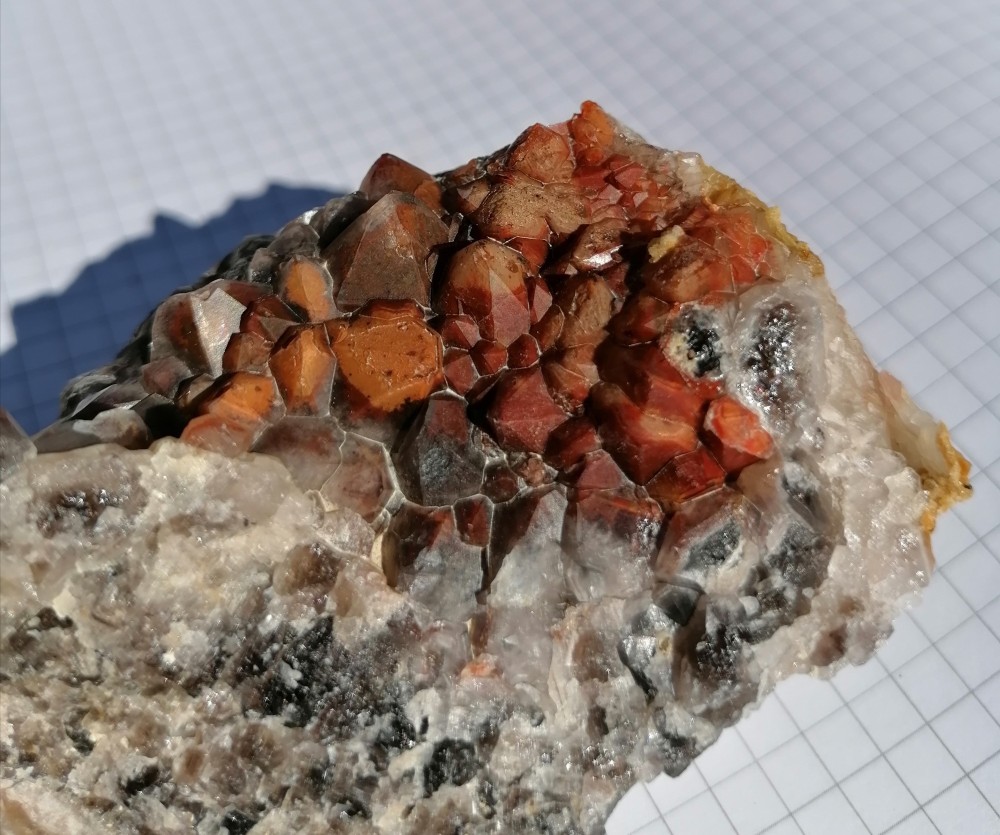 Octaèdre indéterminé - surement silice - (présent sur quelques pièces) je pense plutôt à une formation siliceuse étrange qu'à du quartz... on note pas mal de "fissure" avec ce genre de plaque qui s'est glissé entre (comme on peut noter sous l'octaèdre)