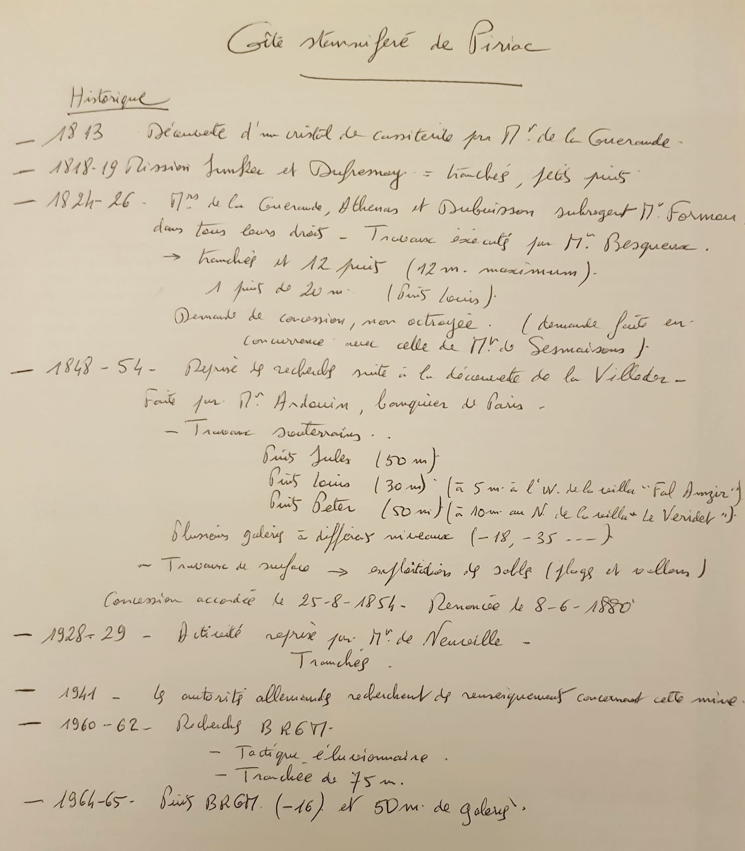 Je viens de remettre la main sur une synthèse de l'histoire du gisement stannifère de Piriac, que m'avait fait Y. Lulzac il y a 3 ou 4 ans (il a énormément travaillé sur les gisements d'étain en Bretagne puis en Asie lorsqu'il bossait au BRGM).