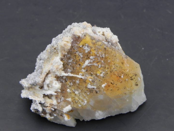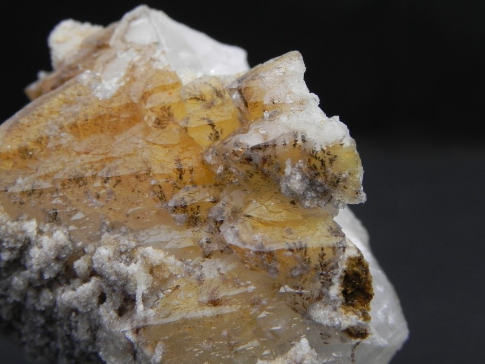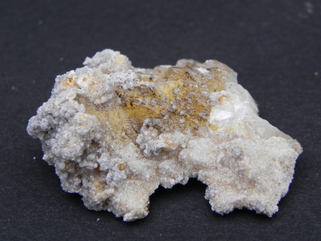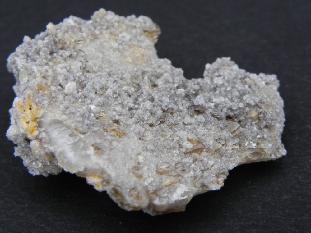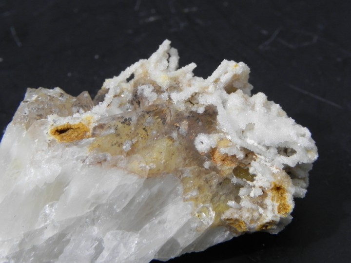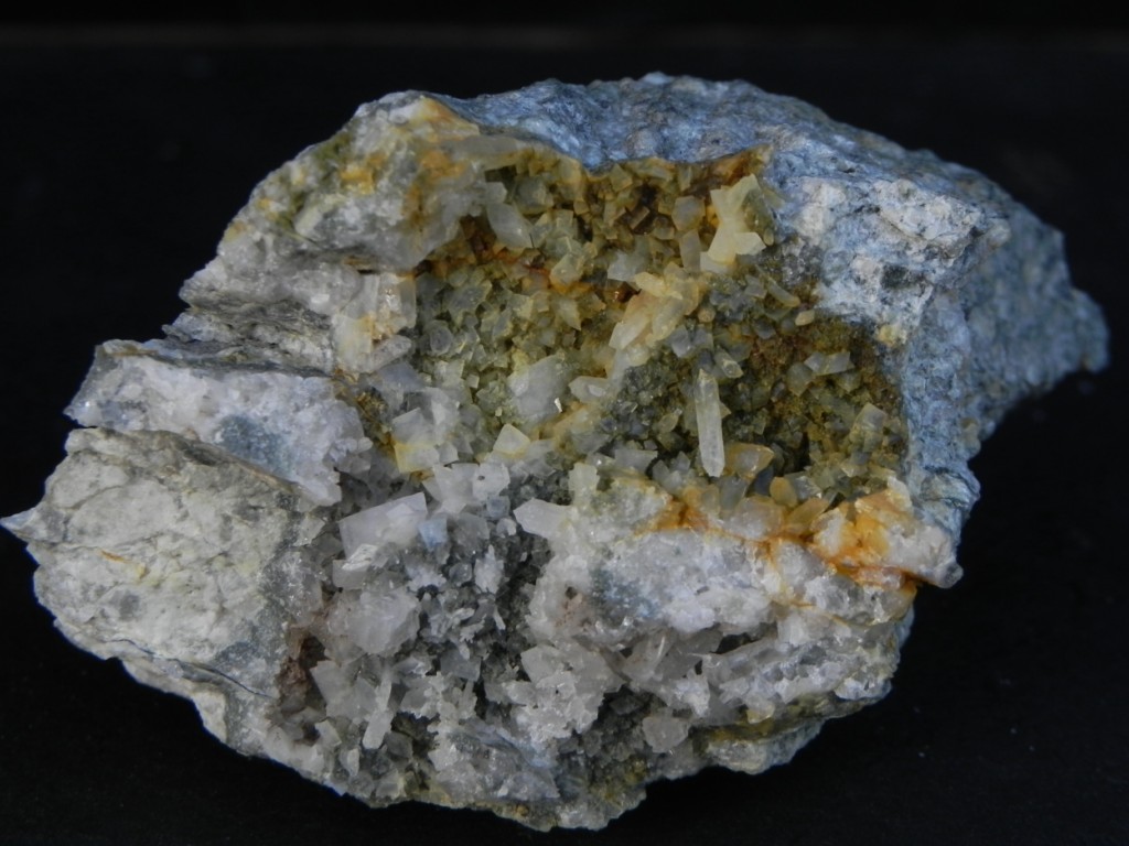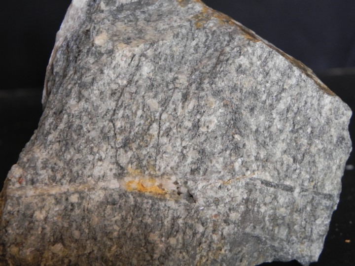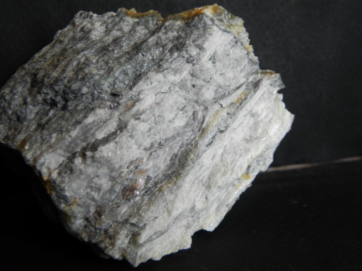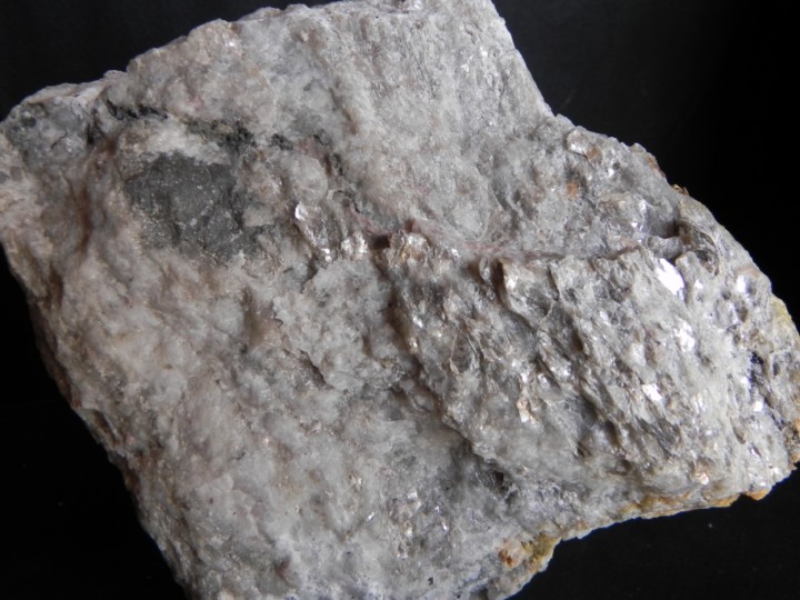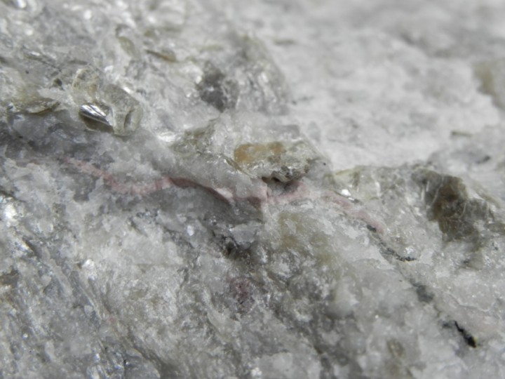 Oui, donc typiquement un leucogranite qui a un peu morflé (bandes de cisaillement et recristallisation)...Ce qui correspond bien à l'endroit de la carrière où tu as trouvé les blocs...Je pense que l'on se situe sur des fentes transverses par rapport aux failles principales. Reste donc ce problème de carbonates...Es-tu sûr que ce sont des carbonates (même si ça y ressemble très fortement)? (test acide par exemple ?)