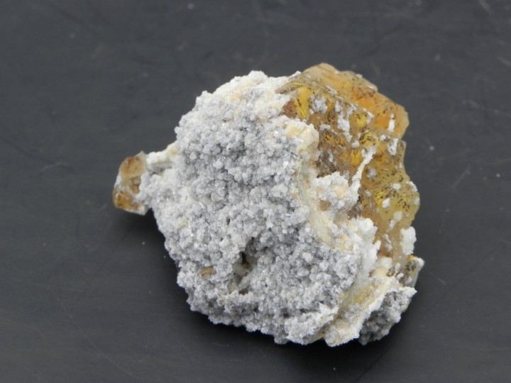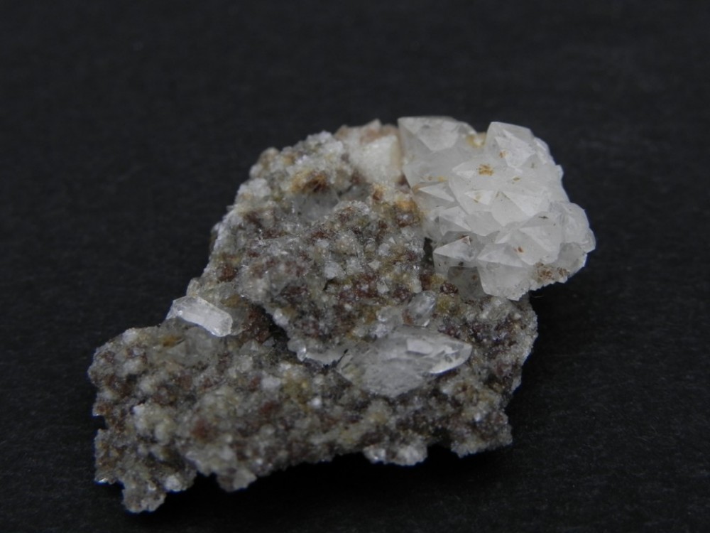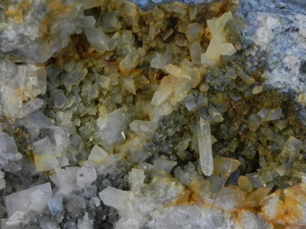C'est très intéressant cette association. Je ne peux pas confirmer pour dolomie mais la localisation géographique et le contexte géologique me laisse un peu perplexe pour ce minéral car il y a peu de choses carbonatées dans ce secteur. Si tu as trouvé ces échantillons dans la carrière à l'Est du village, peux-tu juste préciser si tu te trouvais en contexte granitique (nord de la carrière) ou micaschisteux (sud de la carrière), à moins que ce ne soit dans sa partie centrale où passe une des bandes (branche nord) du cisaillement sud-armoricain (mylonites)? Les as-tu trouvés sur une structure secondaire (faille N°150)? Si ce n'est pas dans la carrière, peux-tu expliciter la nature de la gangue ?