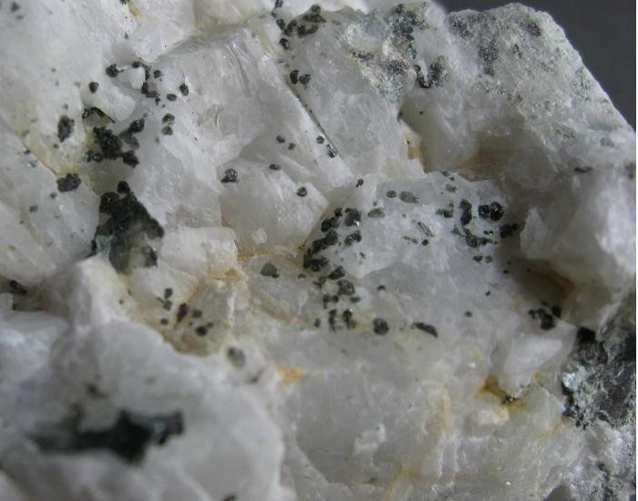 Feldspath (Orthose, Amazonite, Albite), du Quartz, des Micas (Muscovite, Biotite) du Schorl et de l'Apatite (verte à bleu-vert)
