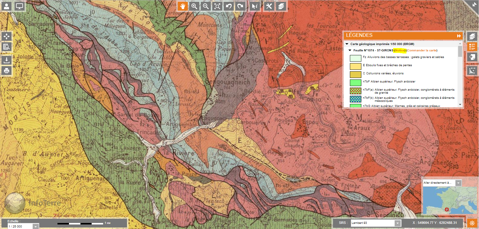C'est pas faux ! Sur une "vraie" carte géologique, càd l'originale en papier, la légende est dans un cartouche sur le côté, avec en prime un schéma structural et une ou deux coupes. Autant de documents qui ne sont pas numérisés...